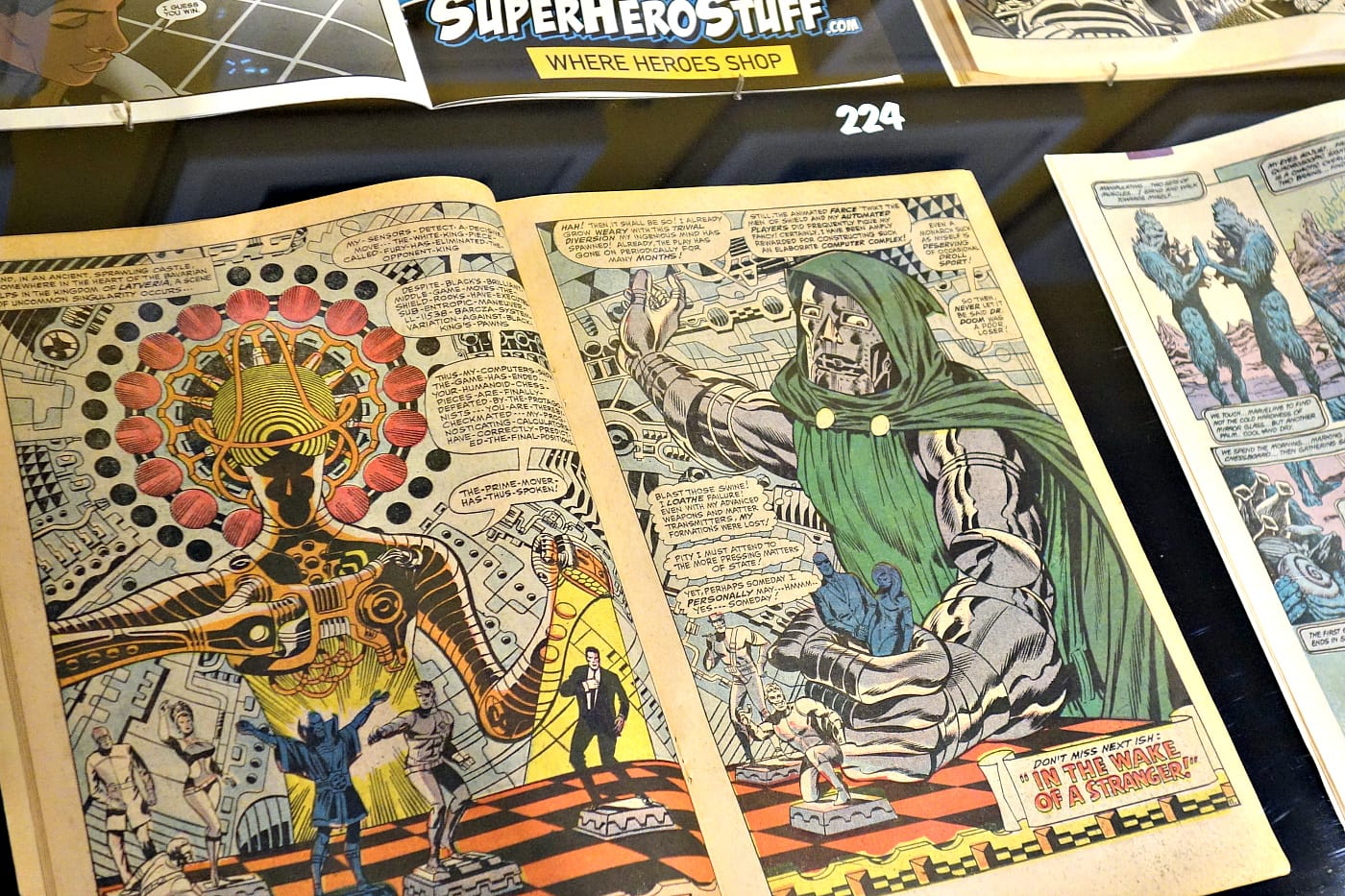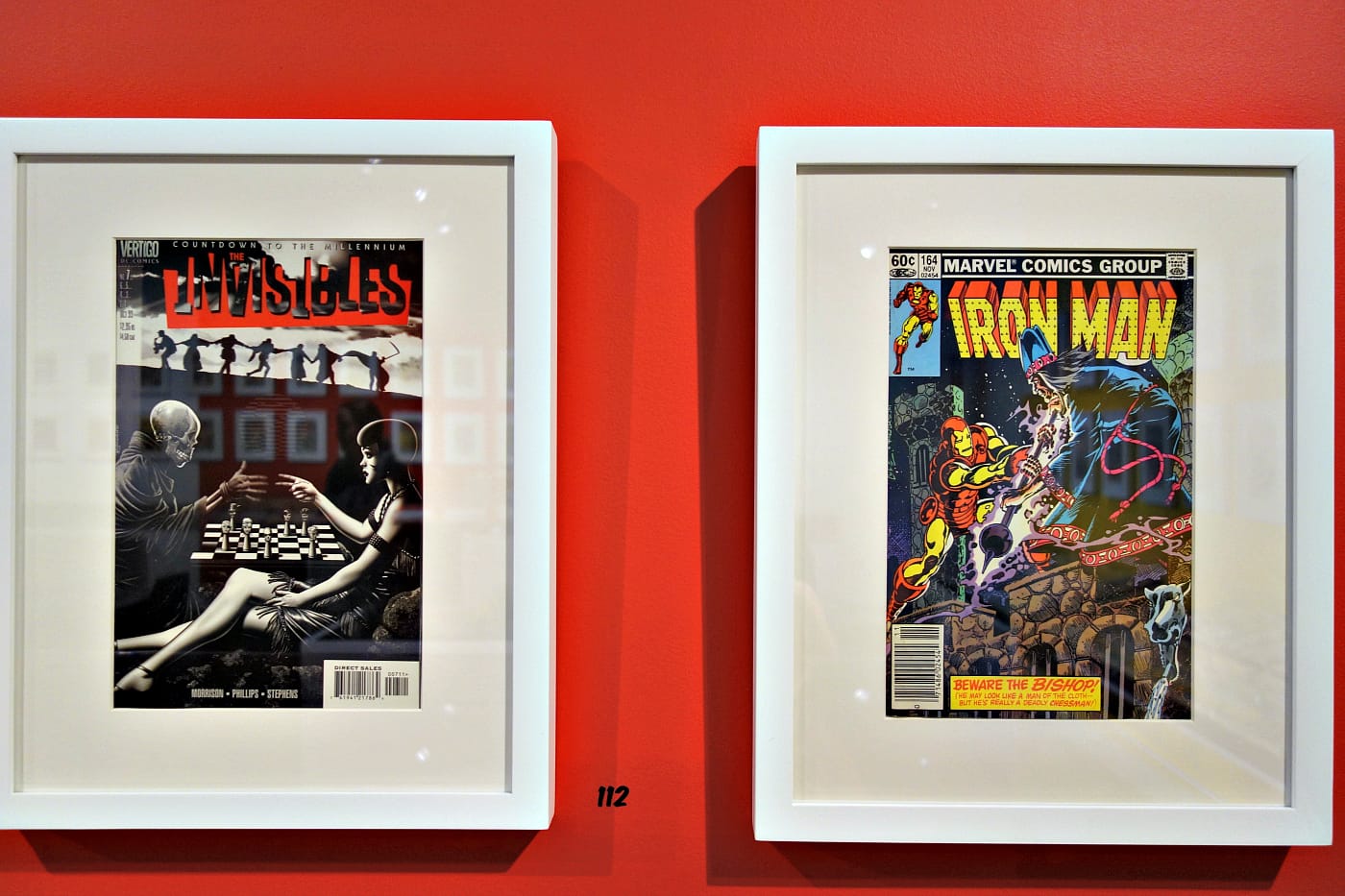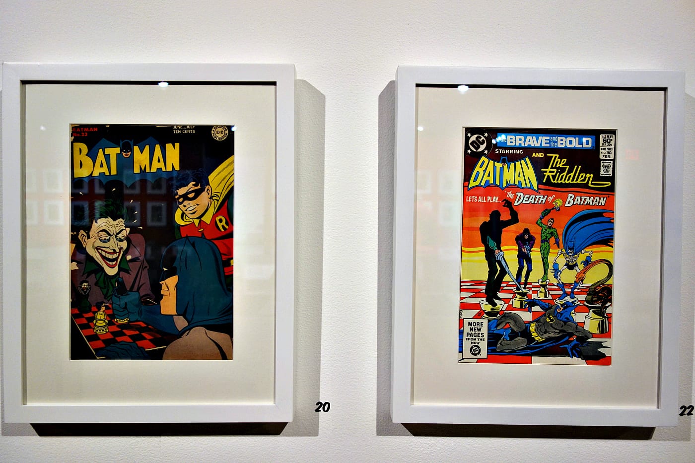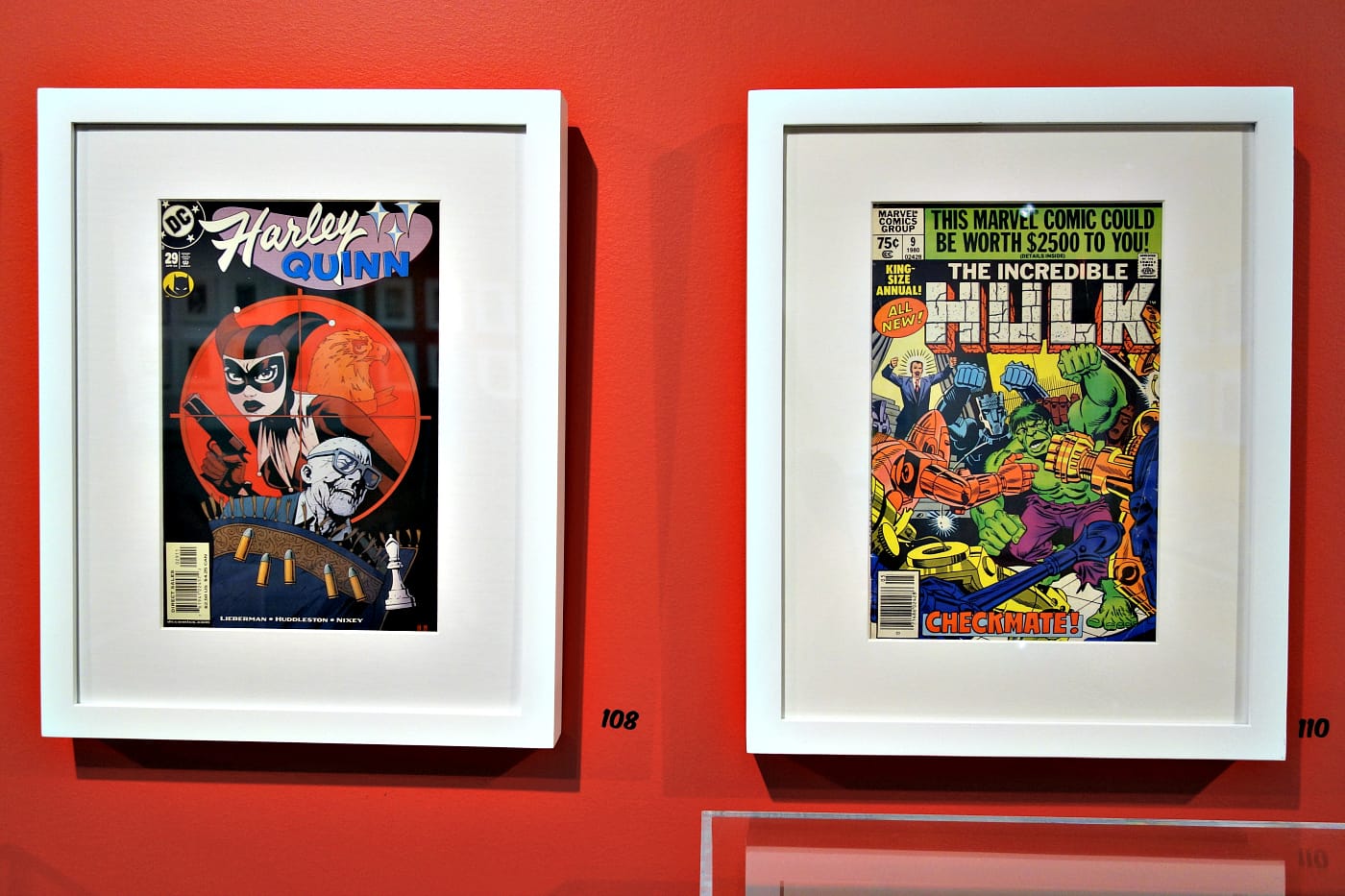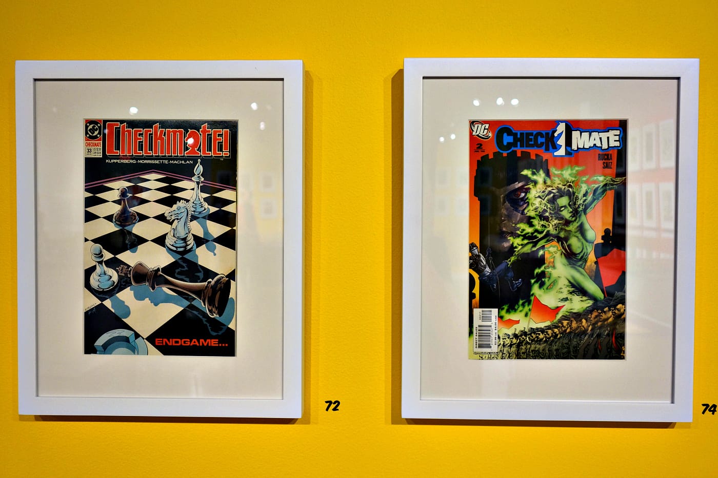The POW! gallery surrounds viewers with more than 200 comic books featuring chess visuals and themes. Special-edition chess sets with comic character pieces are arranged in the center of the room, a few available to play. Some of the comics, exhibited in frames and cases, can be scrolled through with gallery iPads. There are components of the exhibition definitely aimed at kids, like a dress-up space, but there are deep themes present on how the history of comics links with that of chess. What’s recognized as the Golden Age of Comics, stretching from the 1930s to 1950s and punctuated by patriotic heroes such as Superman and Captain America, coincided with international conflicts including World War II and the Cold War, with both sides often characterizing the other as villains in their propaganda. This tone was echoed in comics. For instance, the “Five Dooms to Save Tomorrow” tale in The Avengers Vol. 1, No. 101 was issued in July 1972, at the time when grandmasters Bobby Fischer and Boris Spassky were engaged in the World Chess Championship, a match that Fischer won, and ended over two decades of Soviet chess domination. The comic is a Cold War fantasia of looming nuclear holocaust featuring a Russian chess player character, a chess-playing computer, and chess pieces laced with poison.