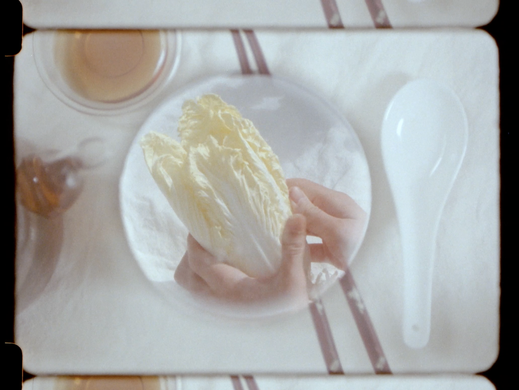 In a grainy video, a hand curls around a crisp white-green leaf from a head of napa cabbage, moving as if to peel and discard the vegetable’s outermost layers. Instead, however, the viewer is witness to an uncanny creation story, with each motion bringing new leaves until the napa cabbage is fully materialized. "white vegetable i" (2021), a video work by stephanie mei huang, is an examination of grief’s transformative powers, a proposal that by attending to one’s fixation on melancholy, one might be able to reassemble that which is lost into a whole.