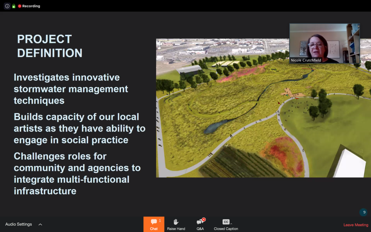 3:08pm EDT: Nicole Crutchfield, a city planner and landscape architect in Fargo, North Dakota, is speaking. She worked with environmental artist Jackie Brookner on The Fargo Project, an initiative to engage different members of the community around a neighborhood storm water basin, finding ways to benefit everyone.