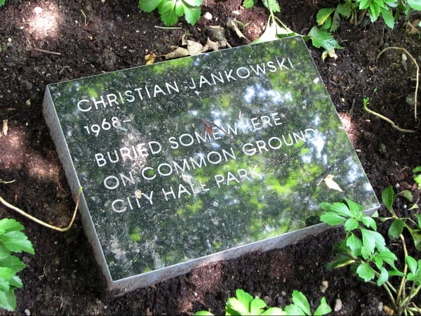 Common Ground at City Hall Park, the newest exhibit from the Public Art Fund, has artists realizing public monuments as acts of memorial and common experience, as well as shared moments of public art whimsy. Contributing sculptures, installations and performances are Elmgreen & Dragset, Ian Hamilton Finlay, Roger Hiorns, Jenny Holzer, Matthew Day Jackson, Christian Jankowski, Justin Matherly, Paul McCarthy, Amalia Pica and Thomas Schütte.
