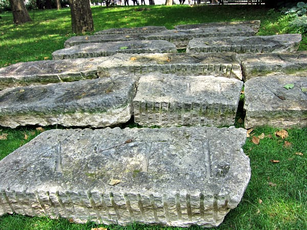 Many civic monuments become arcane relics, as anyone who has walked around Central Park knows when trying to decipher who the statues from yeseteryear which were commemorated years ago by immigrant associations or other lost societies. The late Ian Hamilton Finlay’s sculptural installation has slabs of stone engraved with Latin text derived from words associated to the French Revolution leader Louis Saint-Just: “The present order is the disorder of the future.” It references both the monuments of Rome and Greece that are now ruins to be deciphered, and also how a monument created with a decided purpose can in the future be a meaningless monolith.
