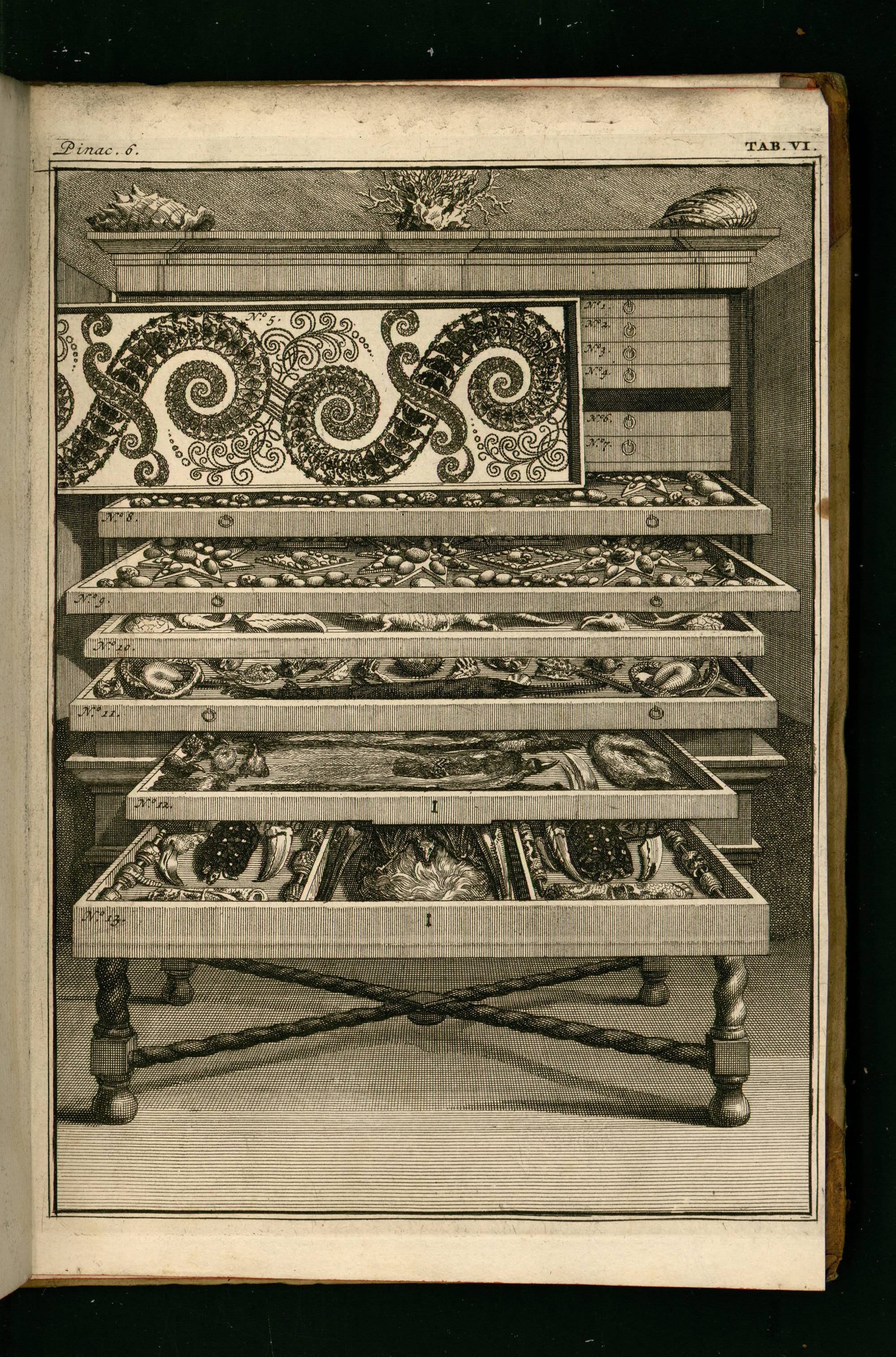 A fascinating essay by Stephanie S. Dickey explores Rembrandt’s own obsession with shells, and the parallels between the shell and print collecting markets of his time. Rembrandt produced three versions of "The Shell (Conus Marmoreus)" (1650), an etching of an Indo-Pacific snail. Some years earlier, he’d paid the highest price for a shell recorded in 40 years of Amsterdam auctions, which became part of his own personal collection of naturalia. As delicate multiples, shells and prints fetched similar prices, and both required special containers — cabinets or albums — for their storage. Sharing these objects with visitors provided “an experience that was both privileged and intimate, and often tactile as well as visual,” Dickey explains.