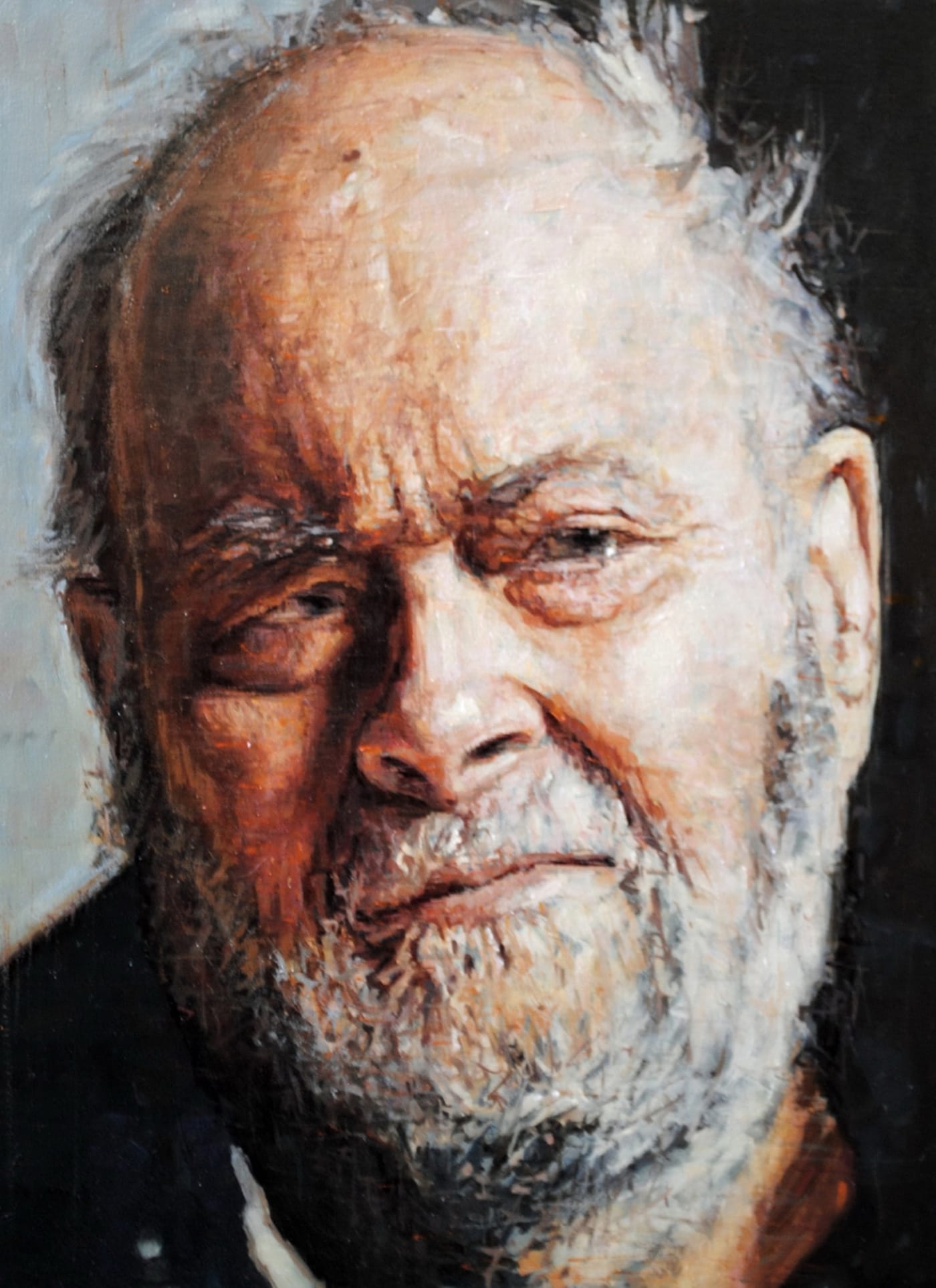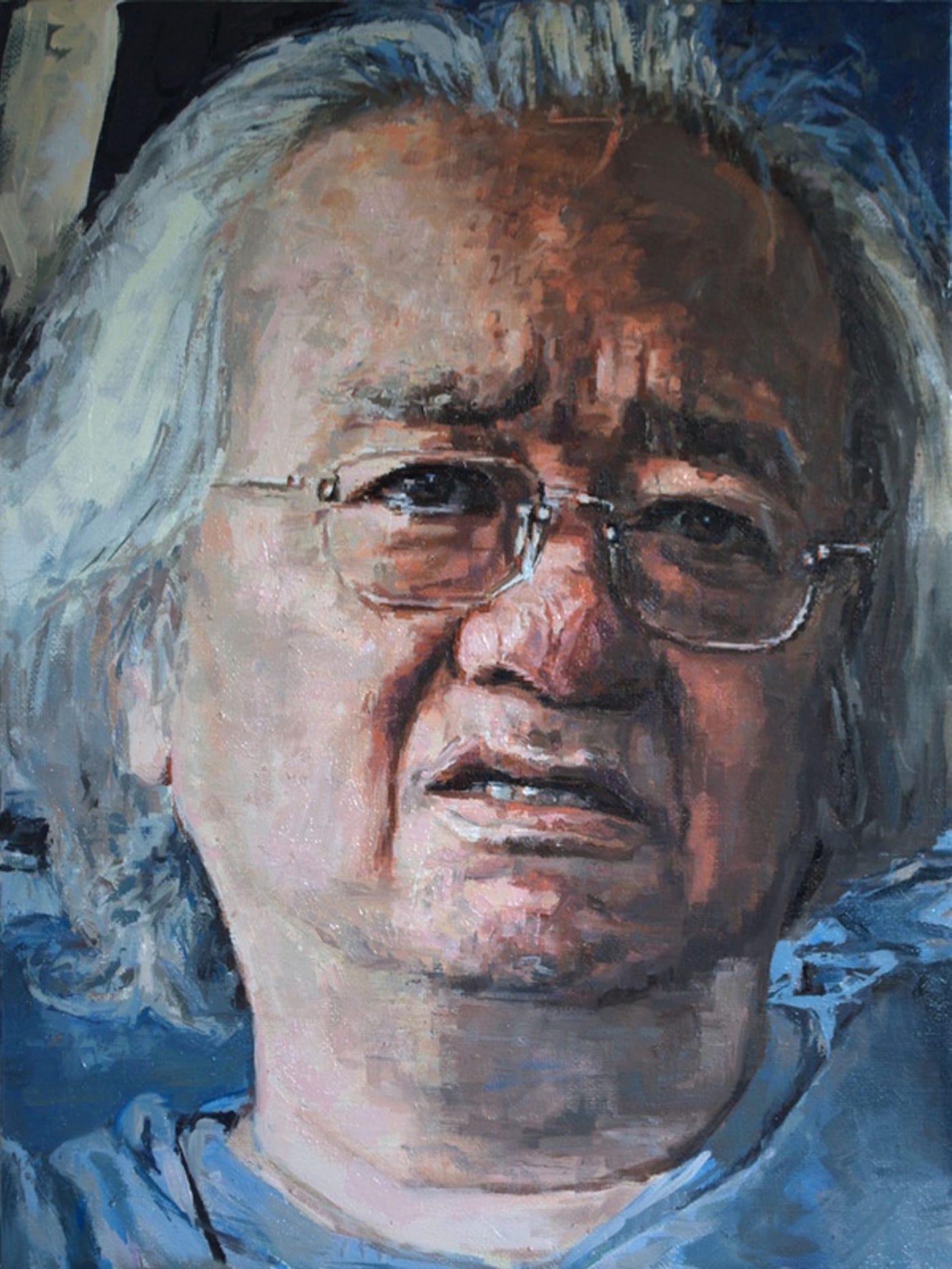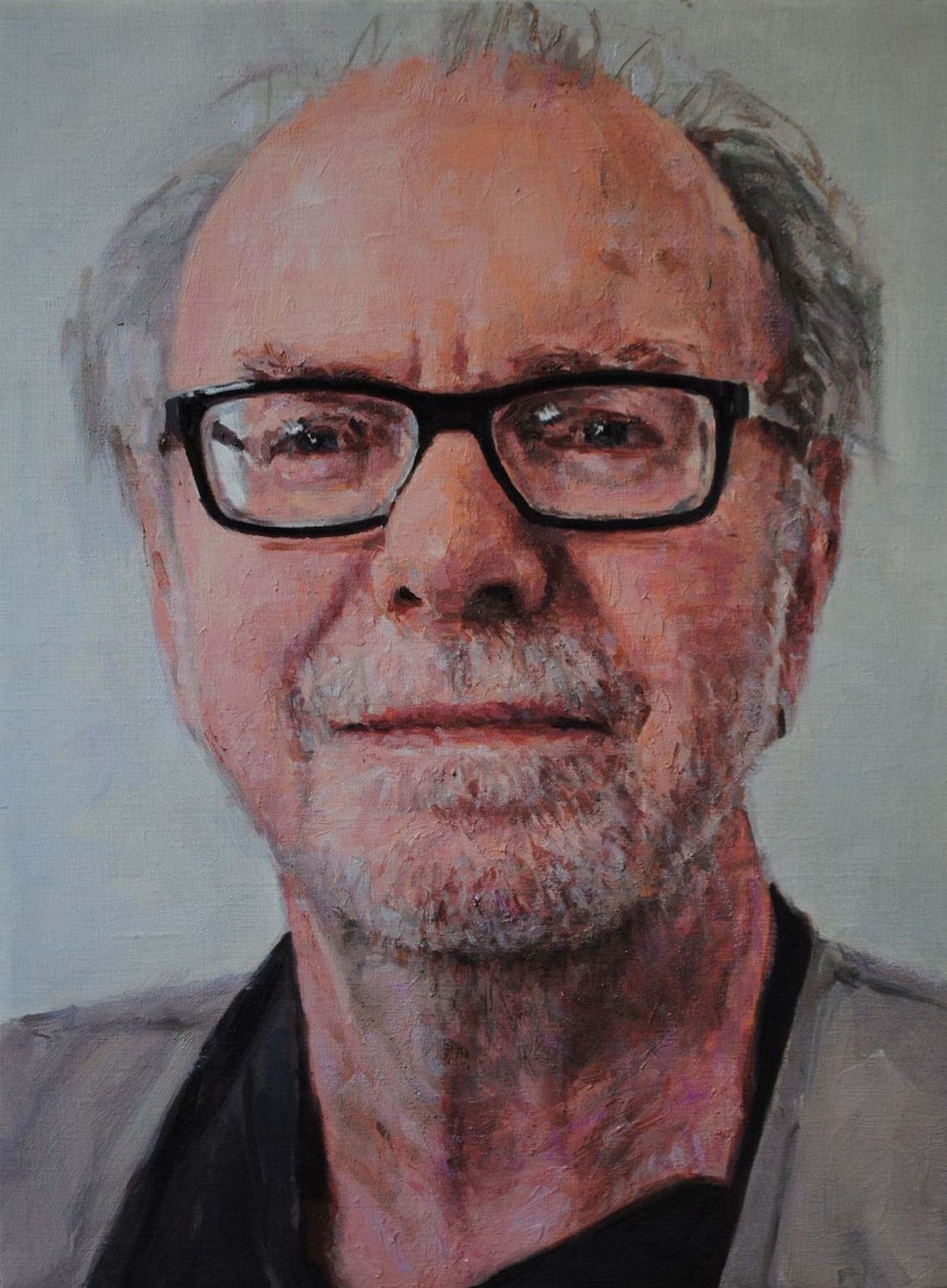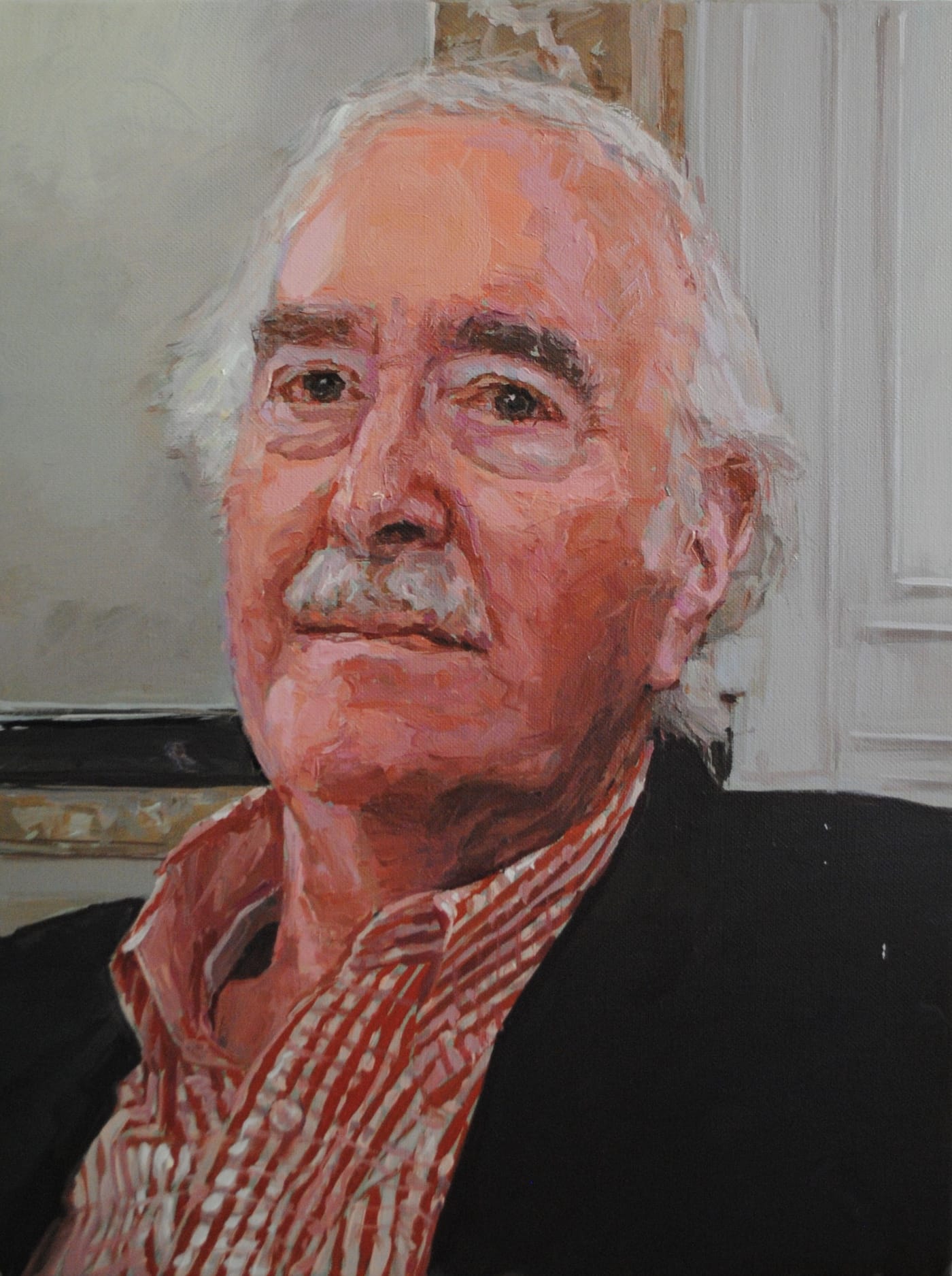I have read with great fascination many of the commentaries that Del Baldo’s subjects have made on their painted images, which now constitute a large body of writing (they are found on Del Baldo’s website). Knowing a writer’s publications does not always prepare you for the way he or she will reflect on such a portrait.