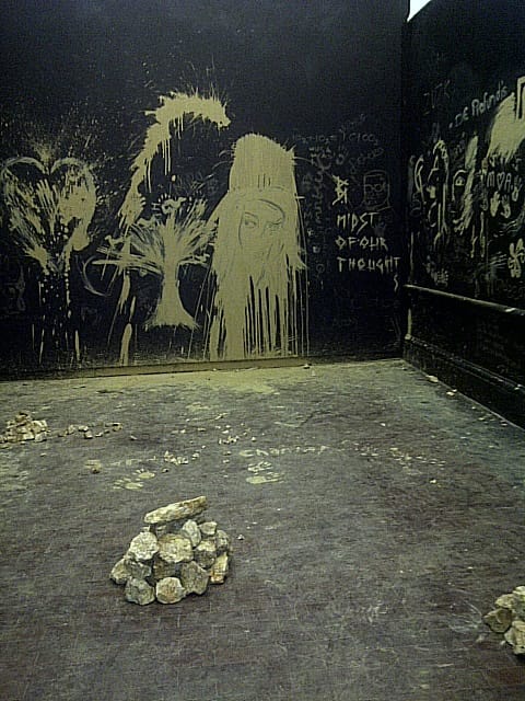 The security guard excitedly tells me that I can do whatever I want and to have fun. The wall drawings that are already there are phenomenal with their raw and playful aesthetic and I feel like I’m finally bearing witness to the first honest and relevant interaction. I want to contribute, but there is no more mud and water.