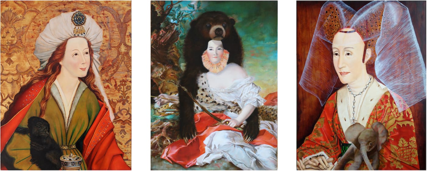 PHILADELPHIA — For the past 15 years, contemporary artist Andrea Hornick has been creating fictional narratives based on early Renaissance portrait paintings of women. For this series, titled Journey, she channels the sitters of the portraits via a shamanic drumming ceremony to identify the animal spirit of each female subject. She then repaints these historic portraits incorporating the animals, creating ironic, satirical works that are also spiritual in their aim to channel the power of the unknown.