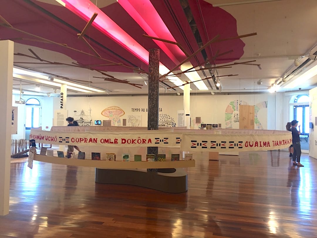 At Dja Guata Porã, videos from both occupations are on display, along with a headphone booth filled with the voices of occupants, who describe their hopes for the community’s future. The intention is to get visitors involved, too, in thinking about how the Aldeia Maracaña and other indigenous communities are allowed to truly exist. Where, the videos ask, is their right to be — whether with the assistance of governmental representation, or other means? From here, the snake of the exhibition trails into a community garden at nearby plaza Praça Mauá, where local plants and foods are grown by members of several indigenous communities.