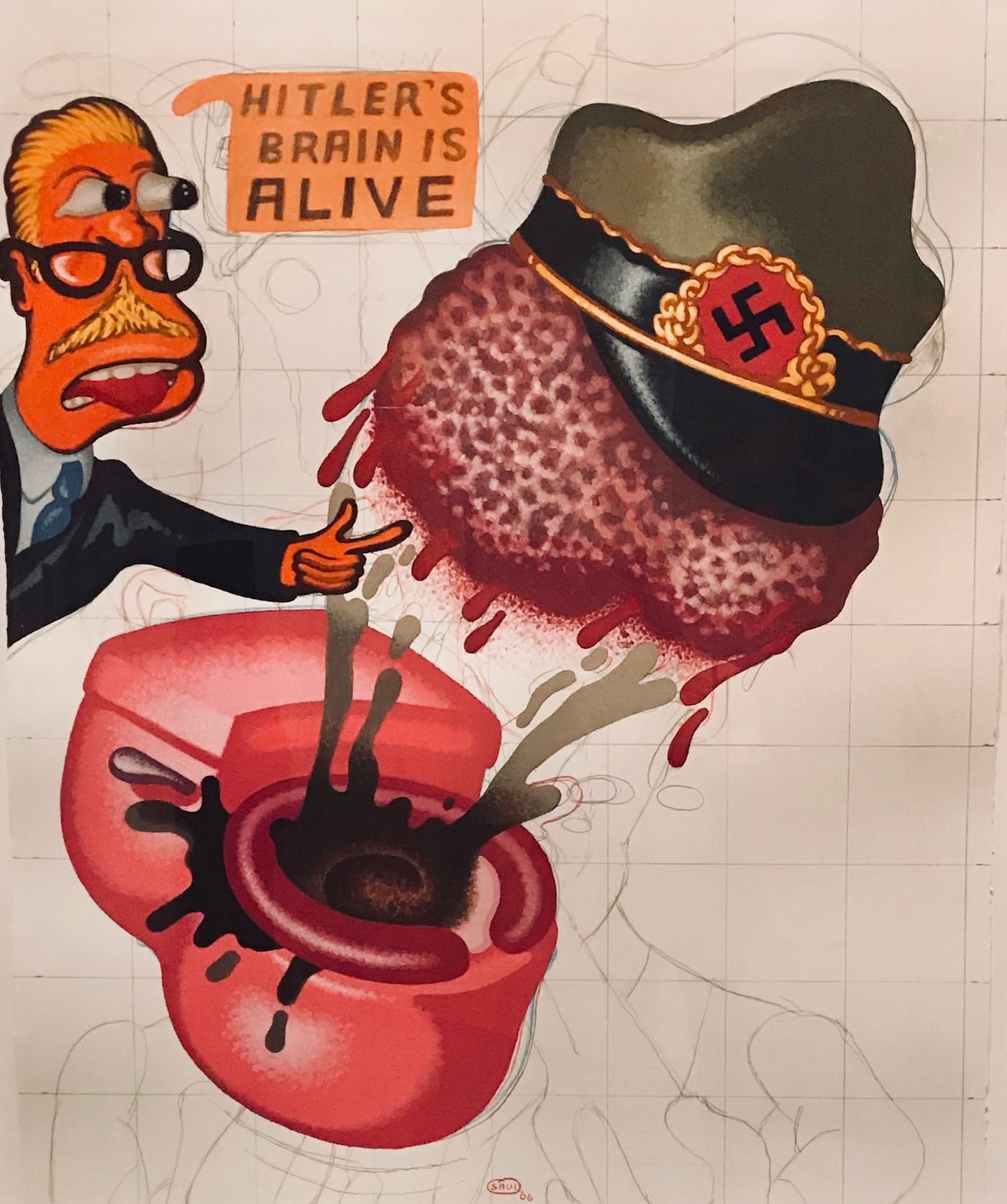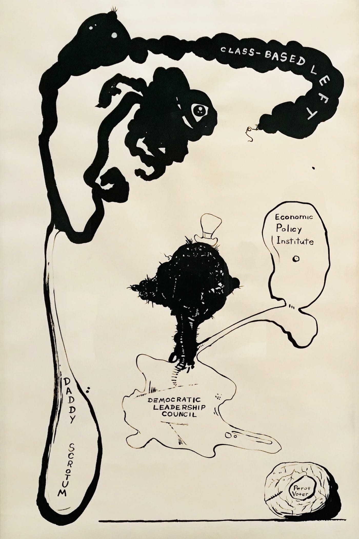 The Metropolitan Museum of Art isn’t exactly known for showcasing extremely political content, but Everything Is Connected never shies away from controversy. John Miller’s “ZOG” (1998) lampoons an enduring conspiracy theory about Jews controlling Western governments by phrasing the acronym within a Wheel of Fortune reveal, complete with a jumpsuited Vanna White. Nearby are Sue Williams’ reactionary paintings about September 11, which are replete with a dizzying array of imagery including genitalia, entrails, black-ops, and the Twin Towers.