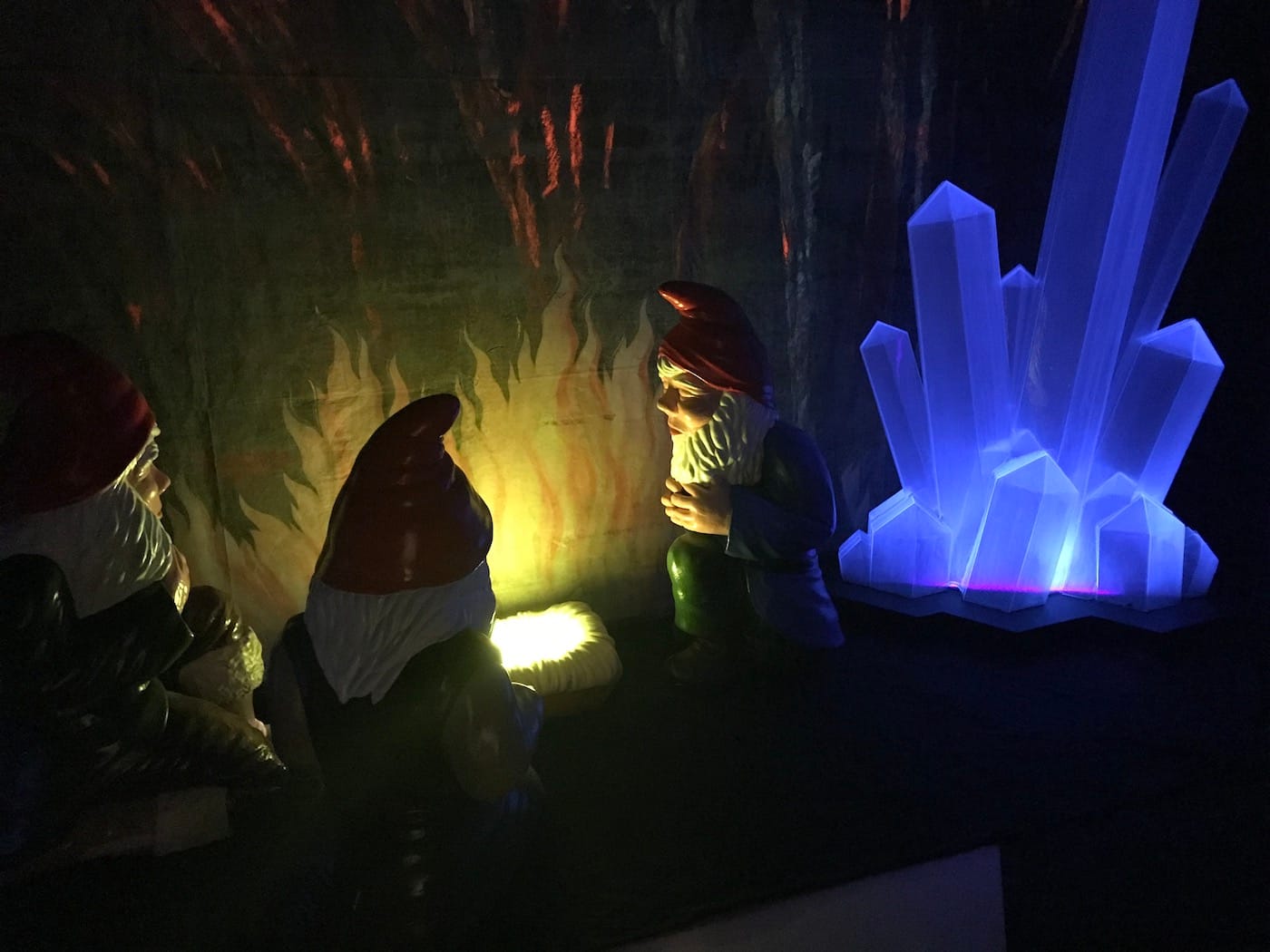 The exhibition ends with a homage to the more outlandish artistic renderings of conspiracy theory, especially with regard to science-fiction. Within this last room, we see Jim Shaw’s garden gnomes kneeling around what the wall text describes as a “conjuring of money from nothing.” To my own eyes, I see a representation of plutonium. (Or maybe kryptonite?) But who knows — it’s all a conspiracy, anyway.