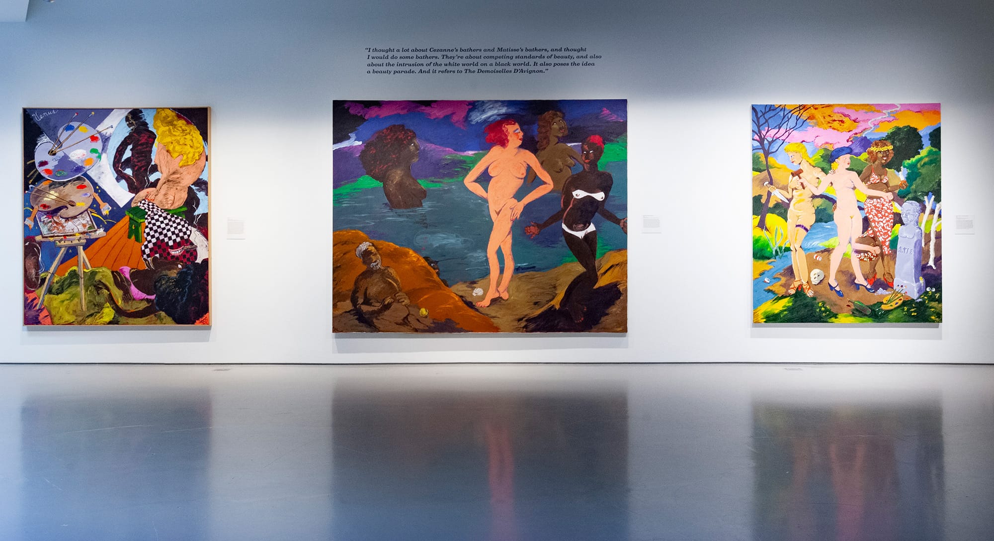 It is important to note that Colescott’s work invited resistance and controversy. His misogynistic narratives and use of the female form to talk about race are a distracting misuse of cultural critique. These aspects underscore the complexity of identity, and also demand a readiness to face the uglier realities within the contemporary condition. When questioning the degree to which these transgressive paintings retain their relevance, I was faced with a sense of confrontation, rather than the theme of satire that is often attributed to Colescott’s work.