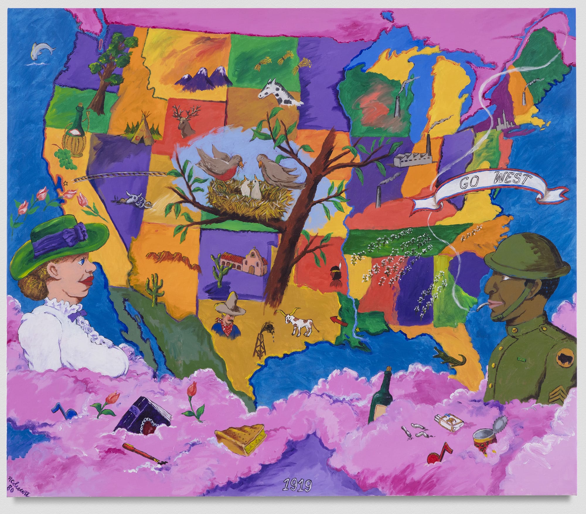 CINCINNATI, Ohio—As both a question and metaphor, the condition of double consciousness is profoundly evident in the work of Robert Colescott. At the Contemporary Arts Center (CAC) in Cincinnati, a recent exhibition, Art and Race Matters: The Career of Robert Colescott presents 85 works from the artist’s fifty-year career. Visitors familiar with his signature acerbic and satirical tone and the large scale, brightly colored figure paintings of his later career may experience shock upon viewing his earlier and more subtle compositions. The rendering of consciousness, in Colescott’s case, is an evolving dilemma, one of risk and contradiction. Art and Race Matters interrogates such duality amid a critical contemporary moment where life and art are inseparable and often, indistinguishable.