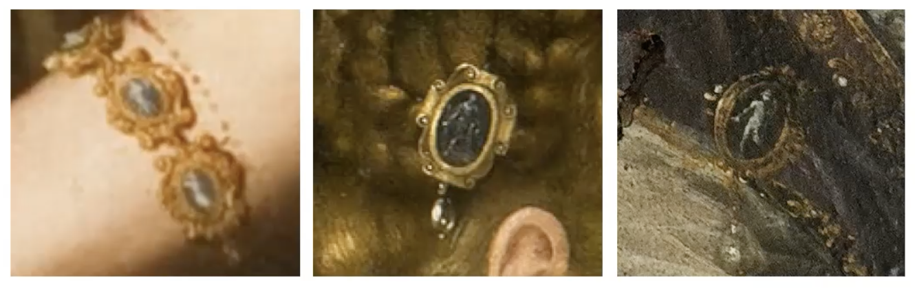 During the online presentation by Buchakjian, Barker appeared to be very impressed with the evidence suggested by the jewelry in the paintings. I asked her why that was particularly notable in the research around her work. “Few painters were as consistent in their use of jewelry in costumes as Artemisia was,” she said. Barker continued: