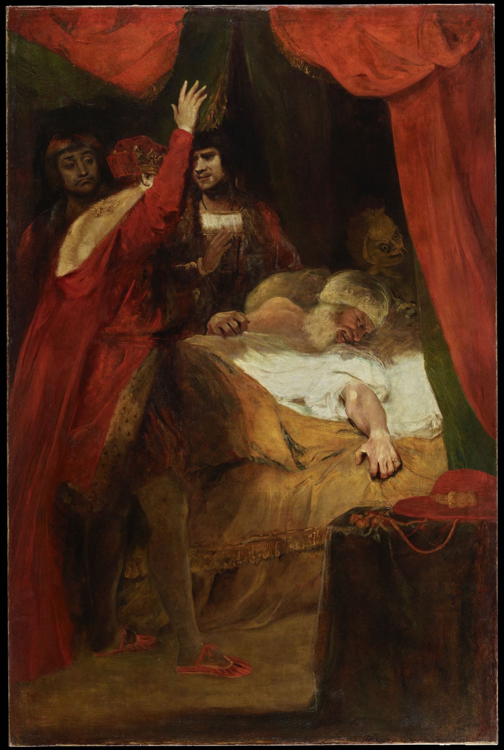 The work depicts the moment in Shakespeare’s "King Henry VI" (likely first performed in 1592) when the monarch's great-uncle, Cardinal Beaufort, lies dying of disease.