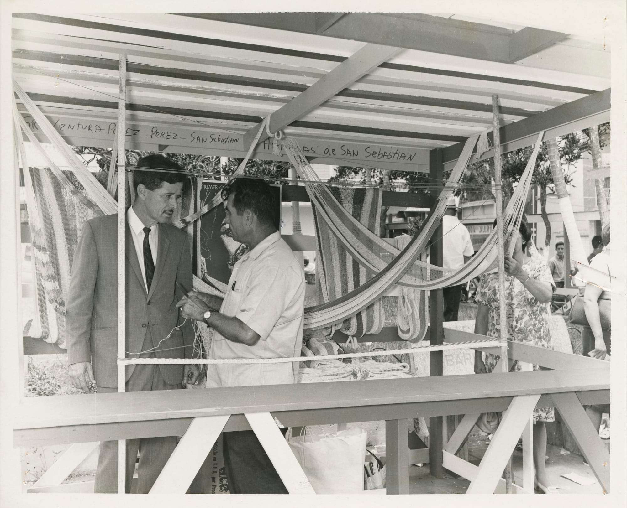 La mayoría de las ferias en las plazas fueron organizadas por agencias estatales interesadas en las historias de la artesanía de la isla. El Instituto de Cultura Puertorriqueña (ICP) organizó la primera feria de artesanía en 1962. En ella participaron tejedores de cestas, talladores de madera, encajeras y luthiers. Tuvo lugar en el pueblo montañoso de Barranquitas y fue parte de un proyecto organizado por el ICP, una agencia gubernamental que todavía opera en Puerto Rico y de la que forma parte el Archivo General de Puerto Rico, donde llevé a cabo esta investigación. El ICP fue fundado en 1955 con la aprobación de una constitución y un nuevo estatus político. La misión de la institución explicaba que había sido creada para “contribuir a la conservación, promoción, enriquecimiento y difusión de los valores culturales del pueblo de Puerto Rico y de todas las manifestaciones sobresalientes de la cultura puertorriqueña.” Esta misión estaba estrechamente ligada a la plataforma de nacionalismo cultural del gobernante Partido Popular Democrático (PPD), cuyo objetivo era “crear un sentido de sociedad homogénea estable frente a los rápidos cambios provocados por el proceso de industrialización y el auge de una sociedad de consumo,” como afirma la historiadora María Margarita Flores Collazo.