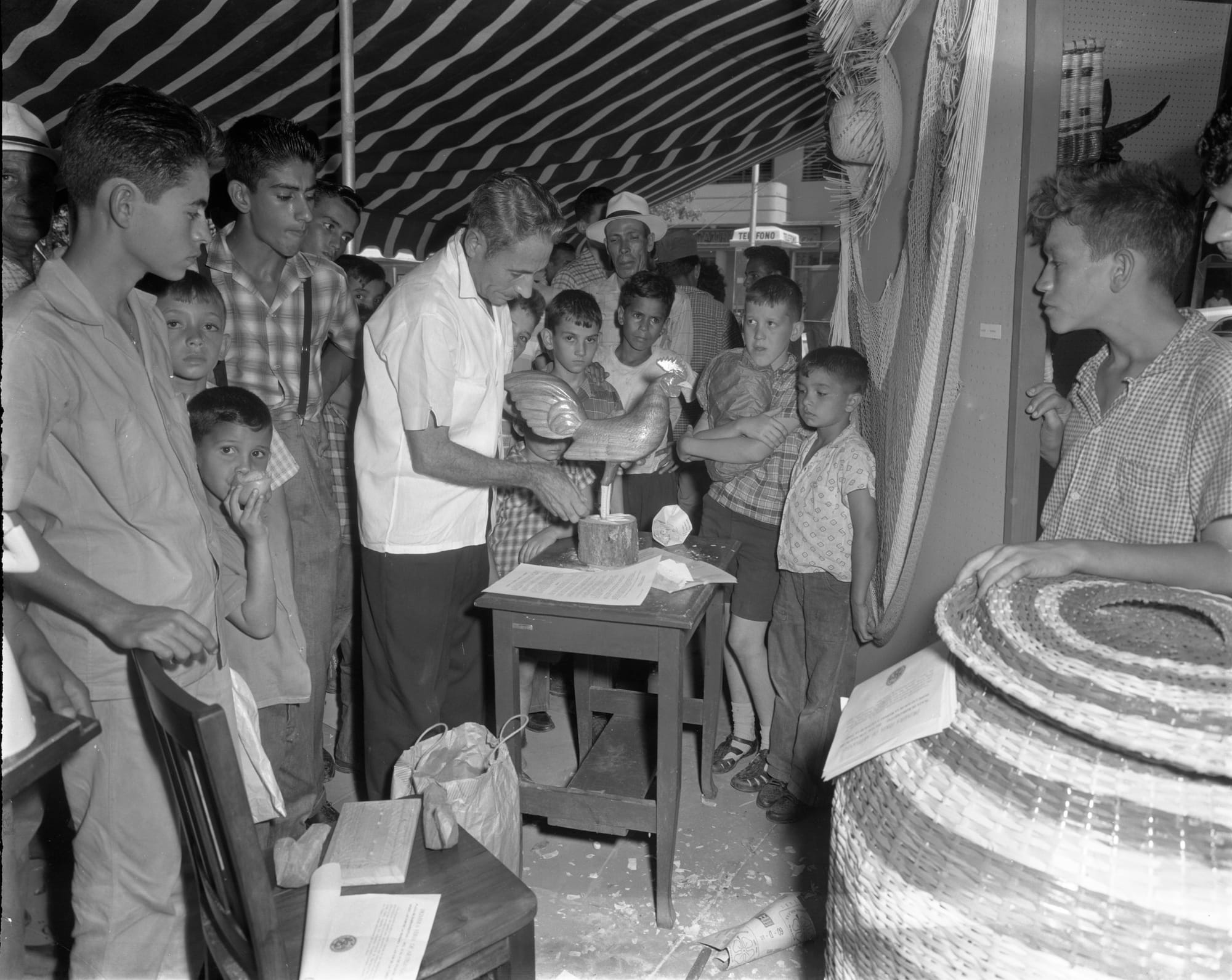 Most town square fairs were organized by state agencies interested in the craft histories of the island. In 1962, the Instituto de Cultura Puertorriqueña (ICP) organized the first craft fair, which was filled with basket weavers, wood carvers, lace makers, and luthiers. It took place in the mountain town of Barranquitas and was the result of an ICP-organized project. The state-led ICP — which still operates today in Puerto Rico and encompasses the Archivo General de Puerto Rico, where I conducted this research — was founded in 1955 with the enactment of a constitution and new political status. The agency’s mission statement explained that it had been created to “contribute to the conservation, promotion, enrichment, and dissemination of the cultural values of the people of Puerto Rico and all the outstanding manifestations of Puerto Rican culture.” This aim was closely tied to the cultural nationalism platform of the then-ruling Partido Popular Democratico (PPD), whose goal was to “create a sense of a homogeneous stable society in the face of rapid changes brought by the industrialization process and the rise of a consumer society," as historian Maria Margarita Flores Collazo stated.