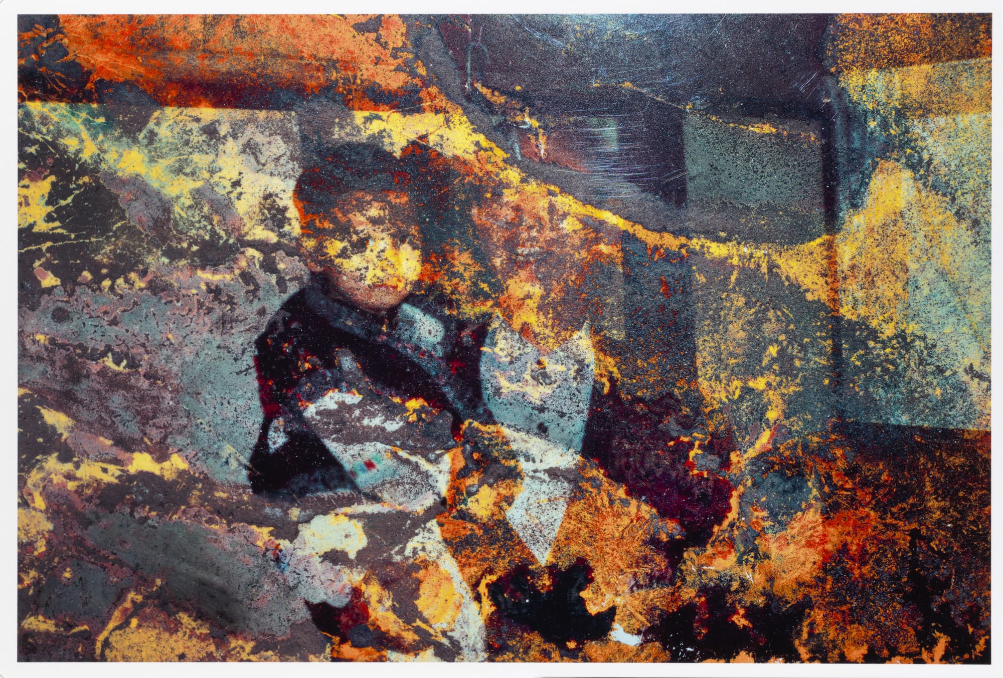 As a refugee myself, I can personally attest to the challenges of making sense of one’s life after forced displacement. A standout work in the exhibition’s final section is “Lost Child 2” (2011) by Kikuji Kawada. A sad-looking child sits alone among layers of dapples and splotches of various colors that blur both the child’s form and the landscape around him. The lone child in this image could have been me, when I left a Thai refugee camp, where I was born, and came to my new home in America. I had no clear memory of my environment then, just impressions of sights and sounds. The layered composition and colors simultaneously and cleverly represents me now, 34 years later, reflecting upon this experience. The artist describes the work’s appearance, resulting from water damage, as “a form of archaeology.” It’s a fitting description for a traumatic experience that requires me, and other refugees, to dig deep, through many layers of filters and memories, to reveal the lost child within.