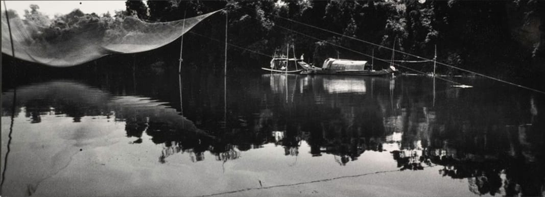 Time’s subjectivity is perfectly embodied in the exhibition’s strongest theme, “Individual and Collective Experience.” “Night” (1974), by Vietnamese-American artist Lê Van Khoa, presents a river scene captured in Vietnam in 1974. But what first seems a serene vignette of domestic contentment, with the fishermen and their families settling in for the night, ultimately serves as a metaphor for a country weary from war. A war refugee, himself, the artist here suggests that the passage into night can feel like an embrace or like an encroachment.