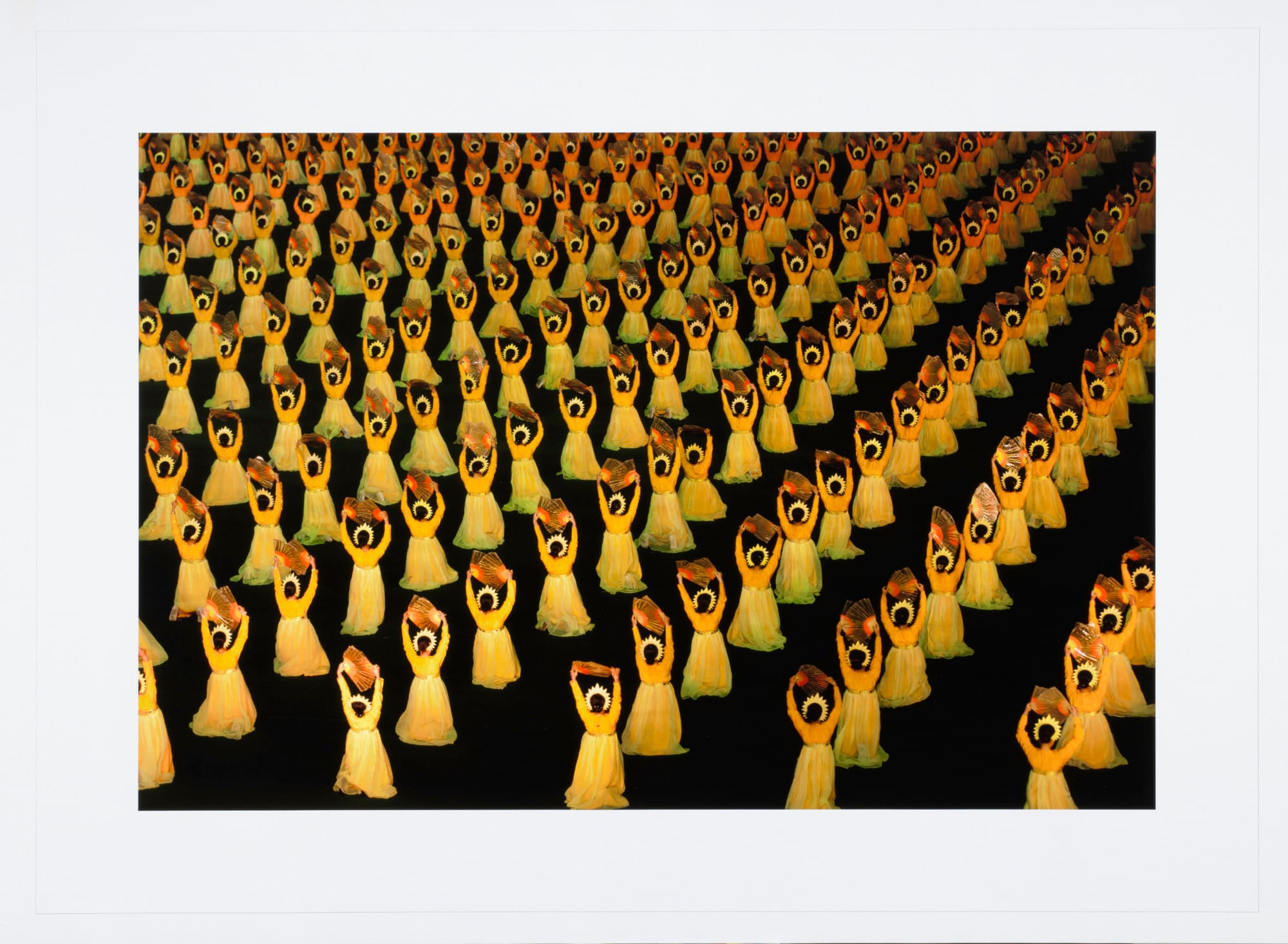 As the saying goes, “time flies when you’re having fun.” Conversely, time crawls when you’re bored. The “Duration and Labor” section captures the results of such time spent practicing or performing a task. “Red House No. 01-13” (2007), by South Korean artist Noh Suntag, presents a group of North Korean dancers arrayed in a striking conformity. Alike in appearance, the women are performing a patriotic dance that is intended to project a uniform and orderly society. Although the work is a critique of this level of conformity, Noh manages to humanize the dancers — the variations within each dancer’s posture are little rebellions against the hours of practice that undoubtedly went into this performance.