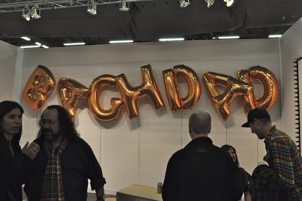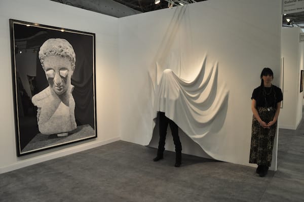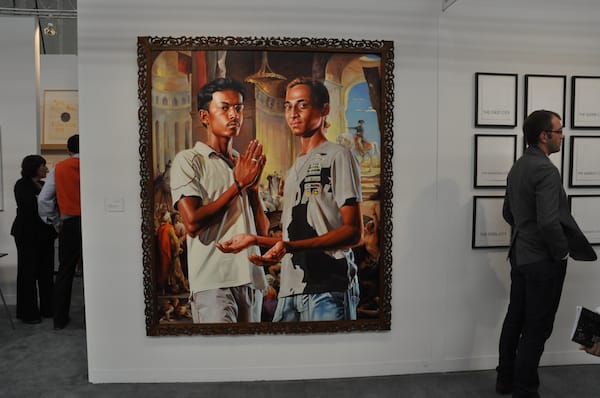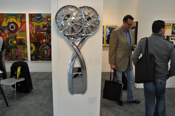 Ronald Feldman Fine Arts, Inc. booth was quite a showstopper. The reflective curtains added a sci-fi edge and inside artist Sam Van Aken’s New Eden show was being explained to visitors, collectors and the press. The trees inside are examples of the artist’s project, which is combining different varieties of trees so that they can give multiples types of fruit.