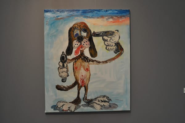 This one is for my brother since it contains some of the things he likes most, dogs and guns. This is Armen Eloyan’s “Untitled (Dog with the Guns)” (2010).