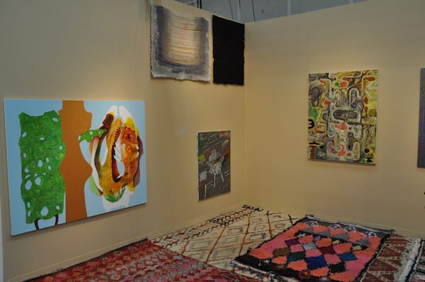 Canada gallery’s booth was carpet-i-licious — a trend I noticed throughout the fair — and this display features the work of (clockwise from left) Carrie Moyer, Jess Fuller and Michael Williams on the left side wall.