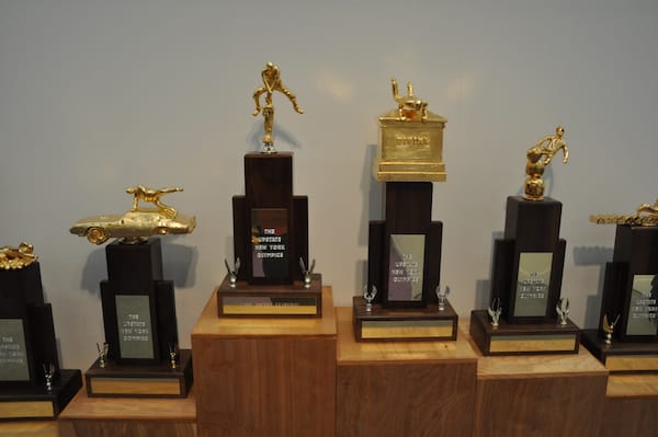The hilarious trophies of Tim Davis’s “The Upstate New York Olympics” series. The competitions including “Lawn Jockey Leapfrog,” “Headstone Exercises” and “Snowman Jiu Jitsu.” The series included videos of performances and digitally altered images of ancient Greek olympic images from red/black pottery.