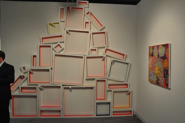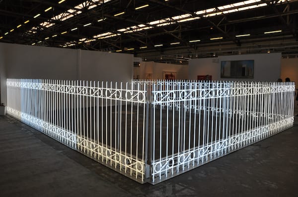 Paul Kasmin gallery has Iván Navarro’s “The Armory Fence” (2011) on display. I guess we know who thinks the art fair is a gated community.