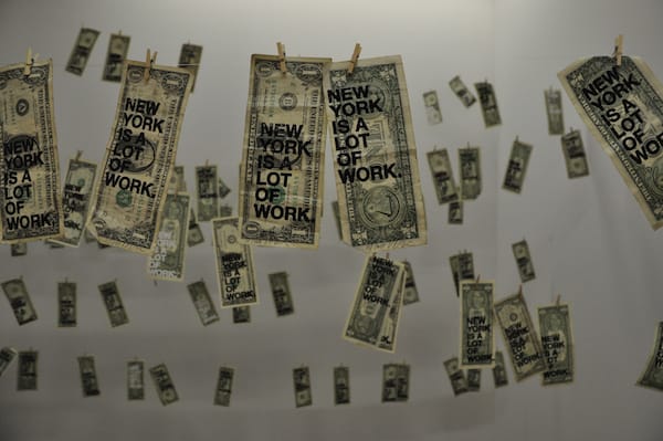 Easily the most affordable work at Armory, artist Reed Seifer’s “New York Is a Lot of Work” (2011) is an edition of 1,000 real US dollar bills stamped with the title of the piece. Each is signed, numbers and available for $25. If you don’t want to do the math, that means Seifer is hoping to turn a $1,000 investment into $25,000. That’s art people.