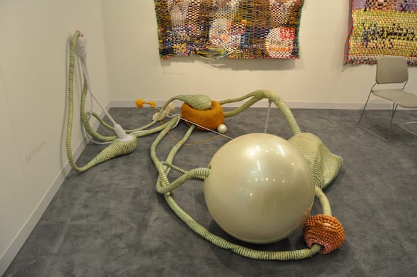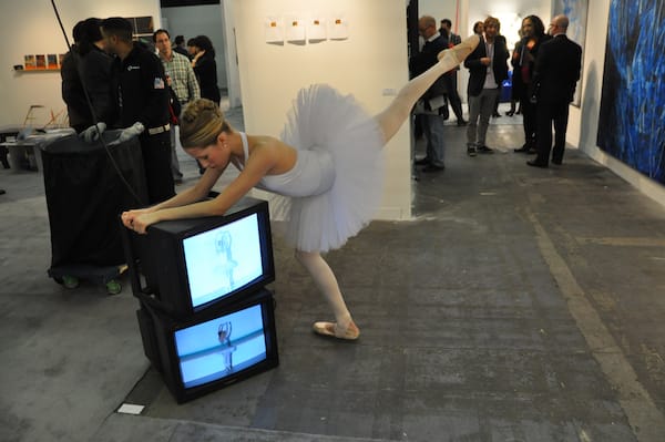 Jen Denike’s ballerina piece at Mendes Wood Gallery of Sao Paolo was absolutely hilarious to me juxtaposed in front of the man carting a garbage can through the aisles of the fair.