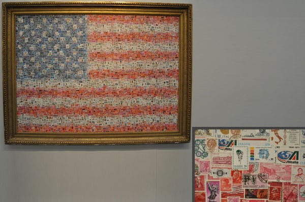 I think Flavio Favelli’s “America (poste italiane)” (2011) is kind of kitschy (detail is inset), but it made me wonder if this is an example of a common meme going from the pop of the online world being translated into contemporary art.