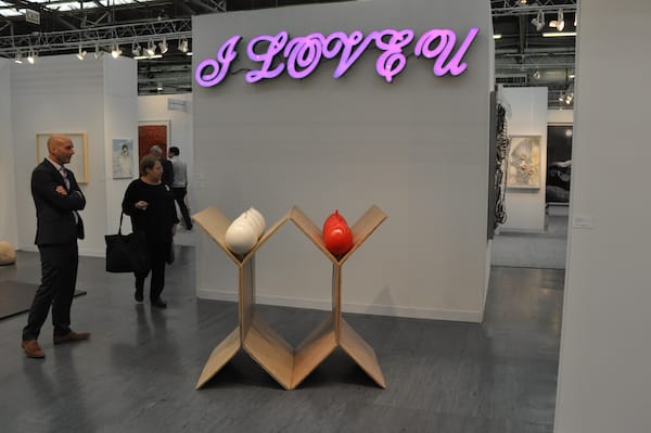 This display at Sao Paolo’s Baro Gallery features all Brazilian artists with the exception of the neon sculpture in the middle, which is by a Chilean artist. Apologies that I lost the list of artists names — art fair casualty.