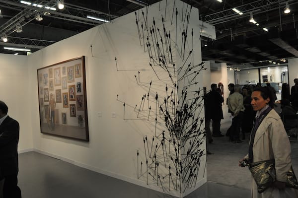 Large works at the Yancey Richardson Gallery booth by Rachel Perry Welty, “Lost in My Life (Silver Twist Ties #1 and #3)” (2010), that walk a fine line between figuration and abstraction.