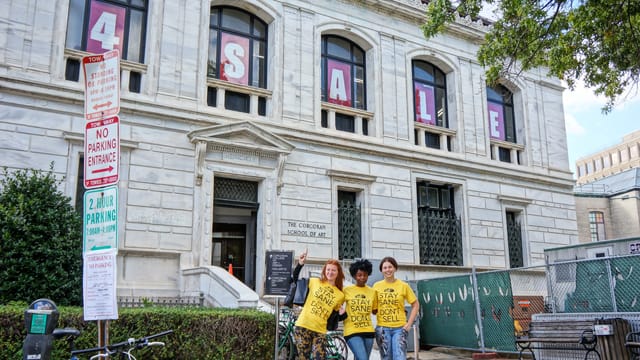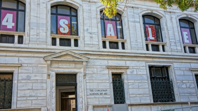 A series of photos posted on Tumblr a few hours ago show a creative protest against the Corcoran's plan to sell its Beaux-Arts palazzo building across from the White House in exchange for a new center in the DC suburbs. In the guerrilla installation, signs attached to the building spell out "4 SALE.