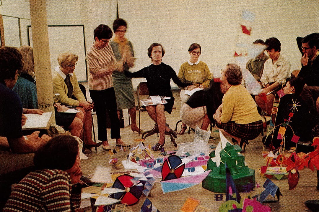 While serving as head of the Immaculate Heart College’s art department in Los Angeles from 1964–1968, Corita launched “The Great Men Series” featuring leading artists, activists, and scholars, including Charles Eames, John Cage, Daniel Berrigan, Alfred Hitchcock, and Buckminster Fuller who called the evening, “one of the most fundamentally inspiring experiences of my life.” Years later, Corita admitted of the title, “we would never call it that now,” and so the reboot is appropriately titled The Great Humans Series.