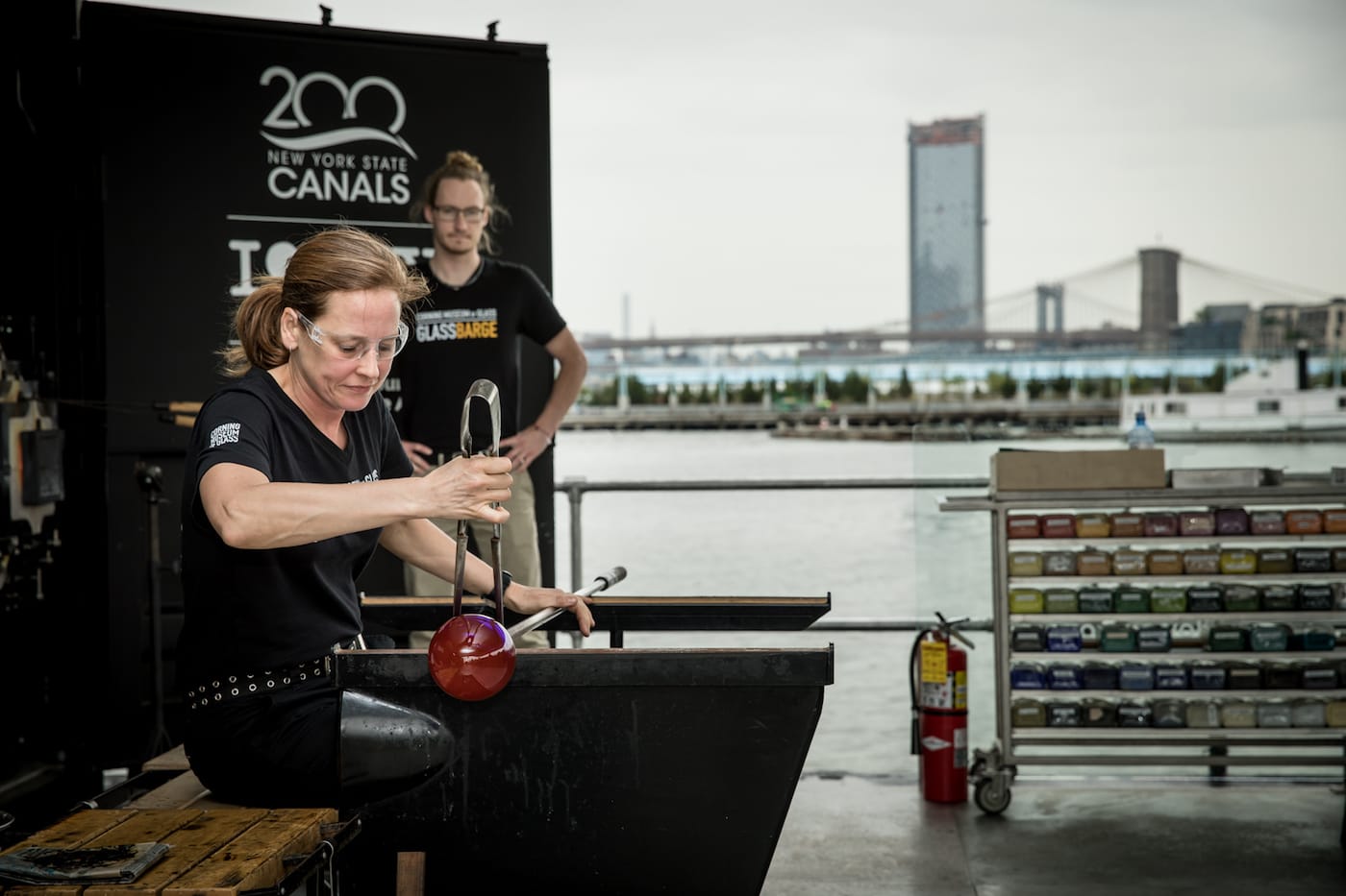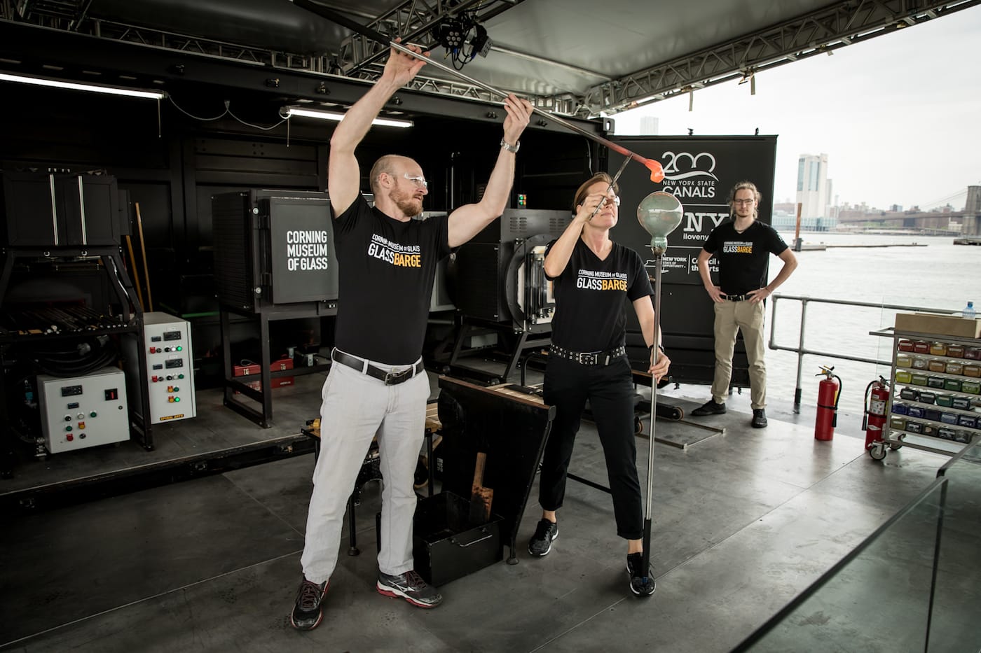 The Corning Museum of Glass's GlassBarge is traveling the New York waterways from Brooklyn to the Finger Lakes, offering free demonstrations of glassblowing.