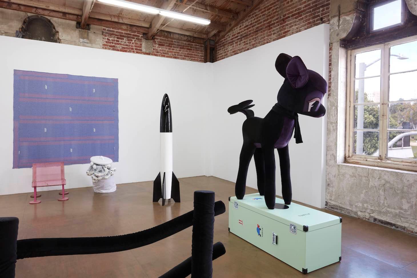 LOS ANGELES — Cosima von Bonin’s art is easy to like. The oversized stuffed animals and textile collages she has made for over two decades are, by turns, quizzical and endearing, familiar enough to be both consolations and surrogates for the viewer, but not so much that they become queasily uncanny. Likewise, her mise-en-scènes and titles are often dryly funny, as if she is inviting us to be in the joke, fittingly for an artist whose practice is founded on collaboration and sociality. At the same time, her art can come across as a series of in-jokes that leave the uninitiated out of the loop.