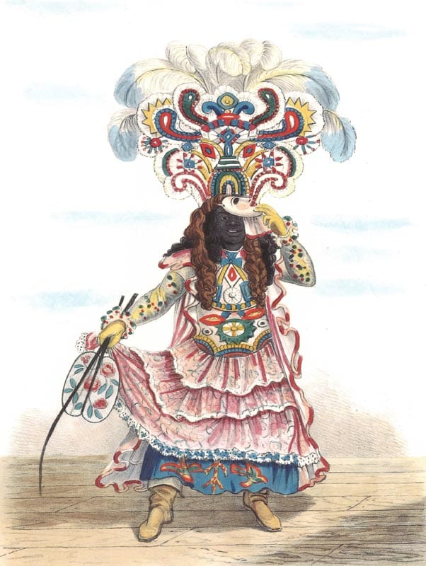 In Jamaica, on the other hand, the practice of Jonkonnu is more ambivalent in that it wields the dual function of masquerade as both a tool for assimilation and a subtle critique of colonial authority. On one hand, performers donned elaborate regalia inspired by European aesthetics in an attempt to project a sense of dignity that could rival their colonizers. These costumes, with their ornate decorations and regal motifs, were strategic choices aimed at demonstrating refinement and humanity, challenging the dehumanizing stereotypes imposed on the enslaved population. By adopting the colonizers’ own symbols of prestige, the enslaved and freed performers sought to elevate their status and claim visibility within a social structure designed to exclude them.