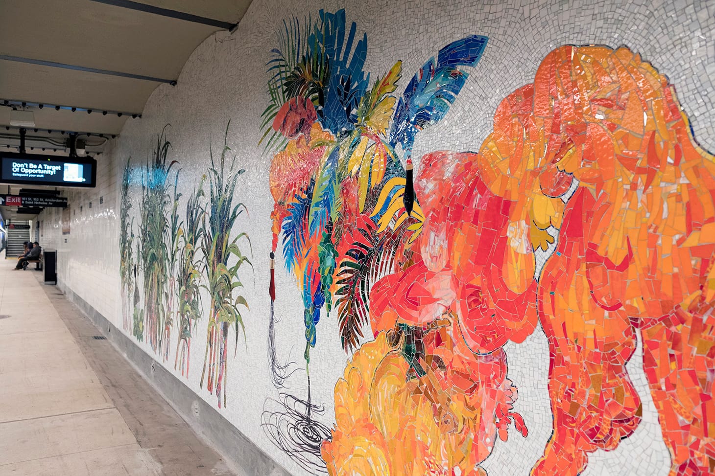 A newly installed artwork at the 163rd Street MTA station vividly depicts flora from the Northeast and the Caribbean.