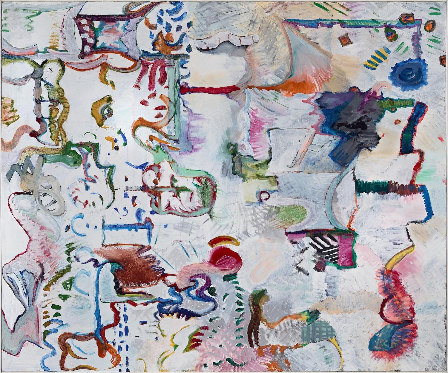 By making a work that neither coalesces into an all-over composition nor dissipates into a chaotic jumble, Bischoff had to walk a fine line. The paintings are remarkable for maintaining an animated tension between the myriad parts and our desire for an overarching structure, while looking like nothing else being done, something that is still true of them. What makes these paintings unique is that, by rejecting style and other known solutions, Bischoff worked from the mid-1970s until the end of his life without a safety net.
