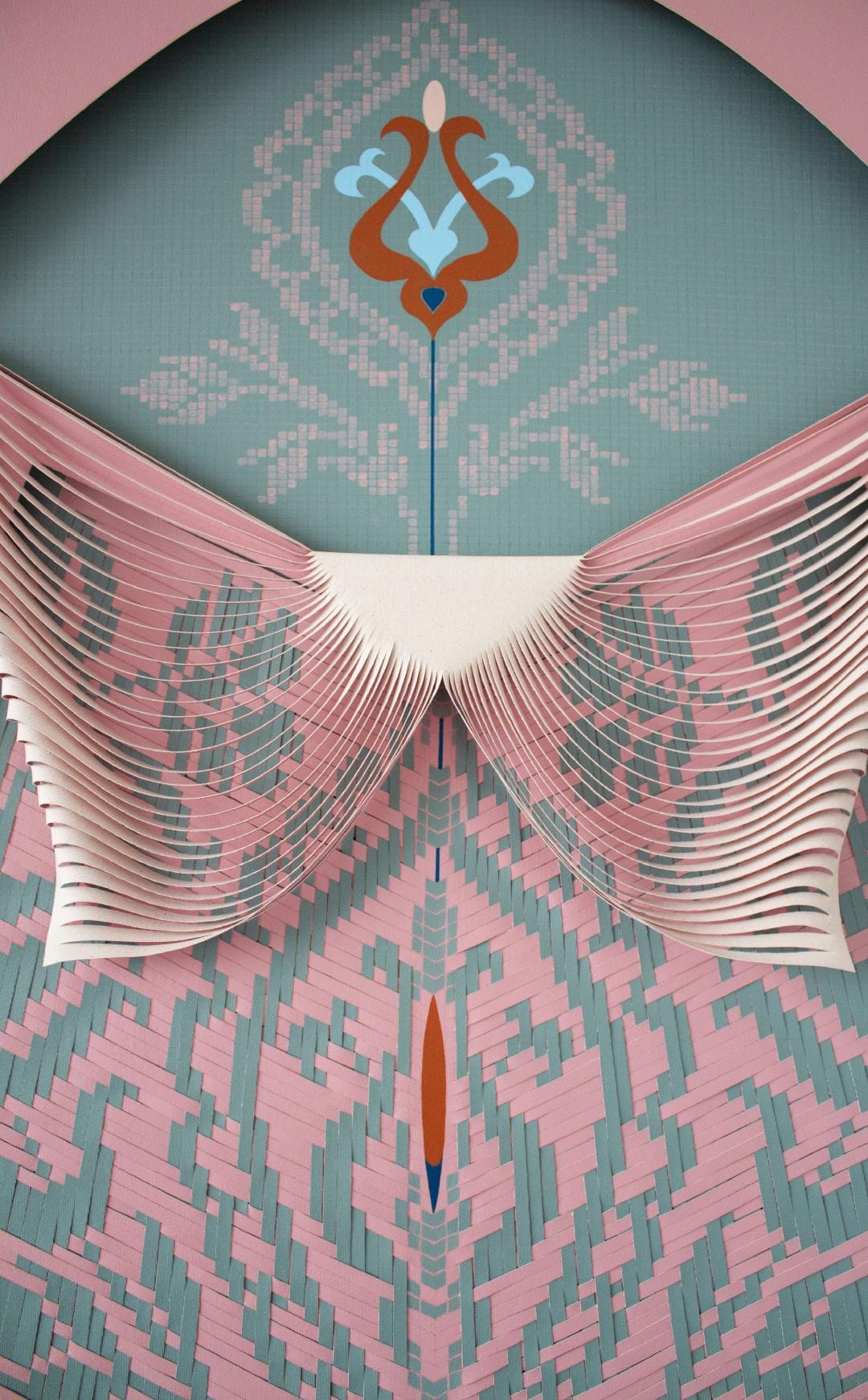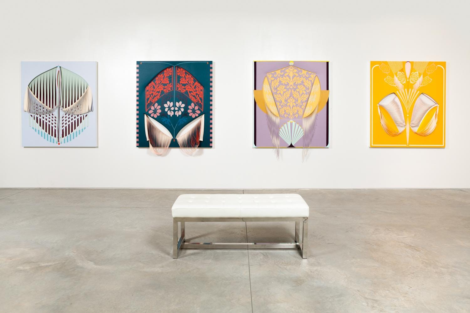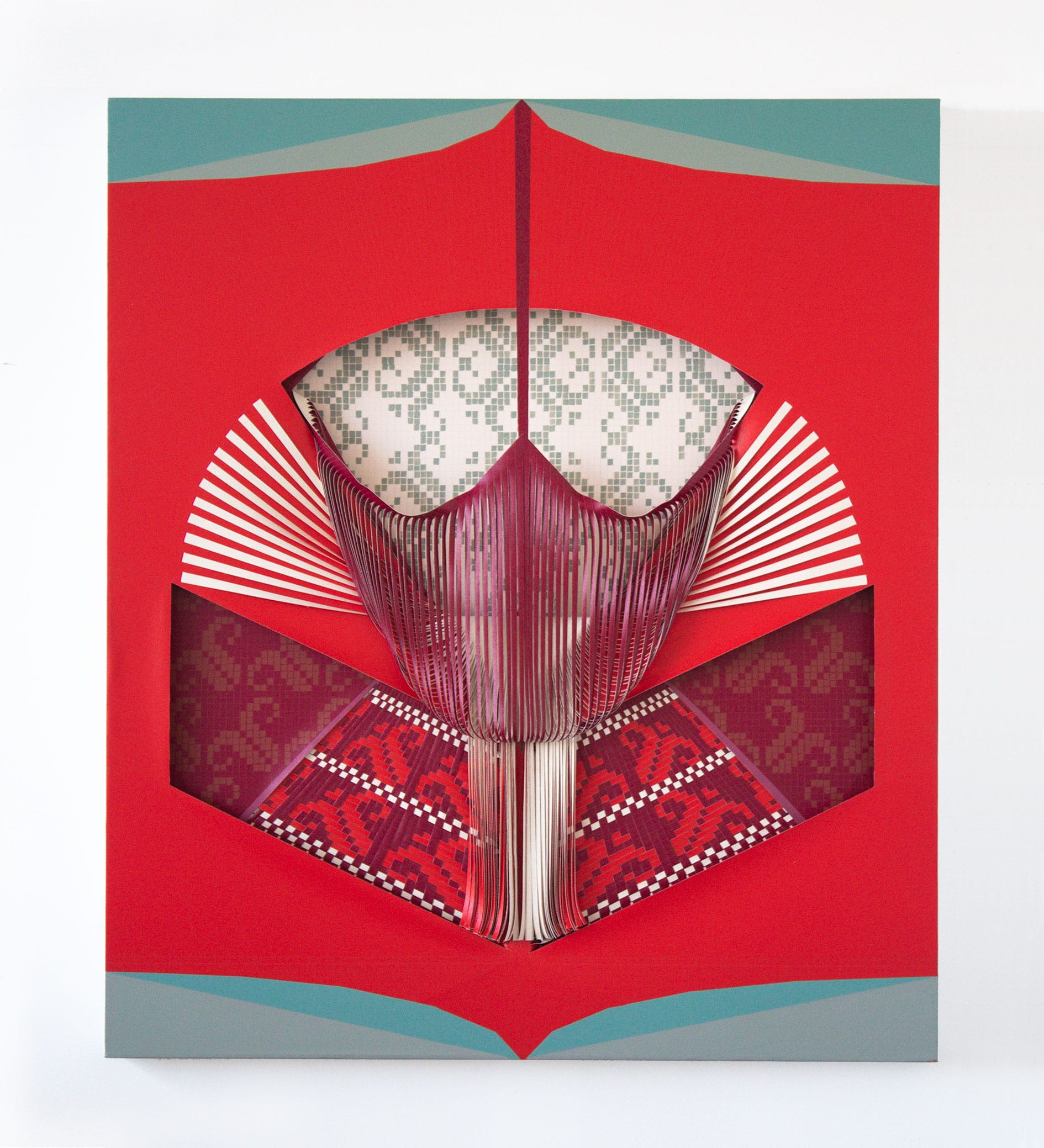 “When the canvas is cut, it opens endless possibilities,” says Colombian painter Cristina Camacho, who weaves intricate patterns into stacked canvases. Her current solo show, /ˈvʌlvə/, at Praxis Gallery — her third since graduating from Columbia’s MFA program in 2015 — evidences an increasingly audacious and masterful play with light, shadow, color, and gravity. Compared to her previous series, which rely more on abstract patterns and geometric forms, /ˈvʌlvə/ blooms with a sense of narrative and symbolism. The canvas seems to have a life of its own, rife with the desire to speak something formerly absent.