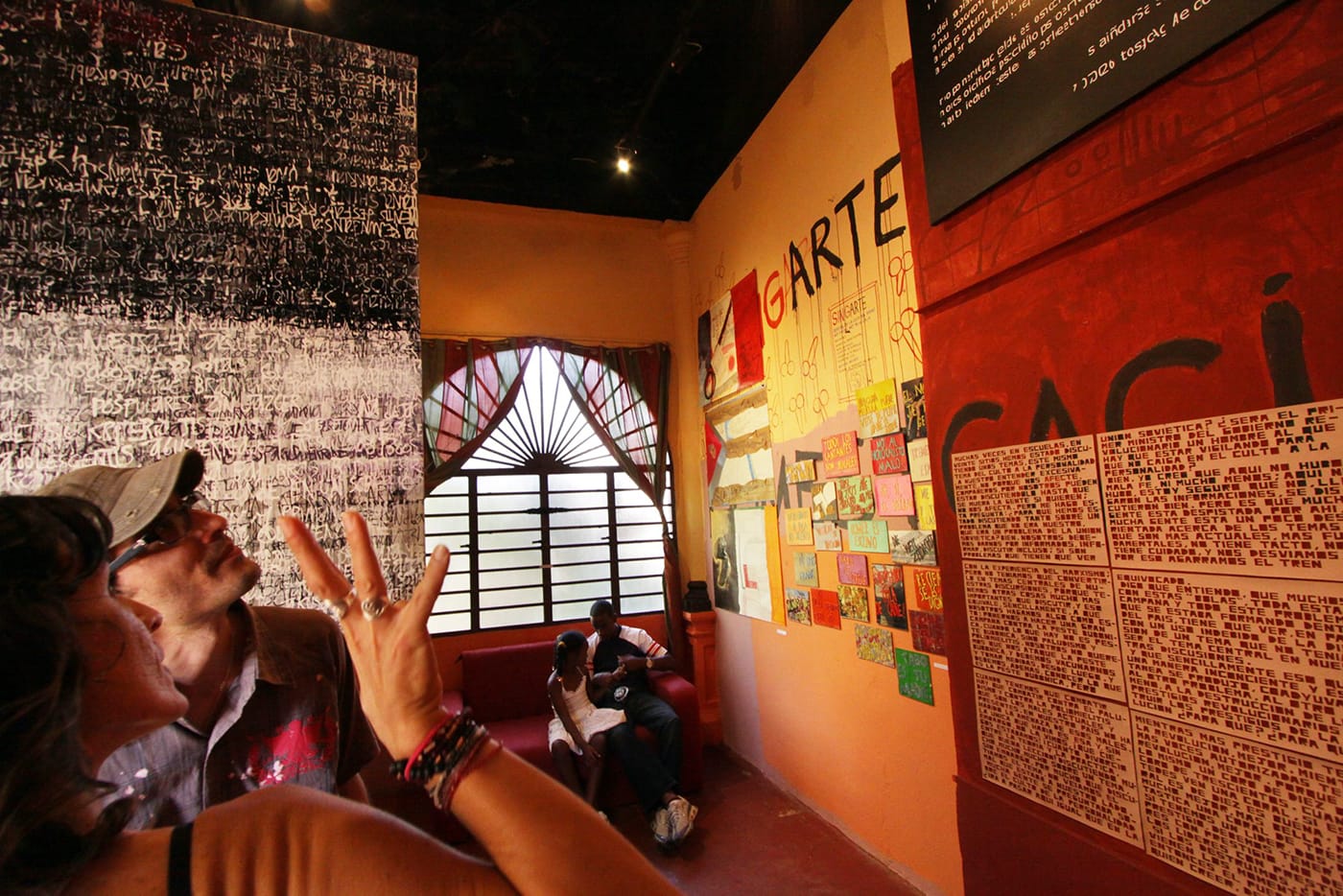 Aglutinador is thus a kind of air bubble in what can be a suffocating environment. Now the longest-running (and one of very few) independent art spaces in Cuba, Ceballos intended it to show work outside of the official culture, as a generative space to think about, talk about, and show artwork. More, it was established to show work by artists on and off the island, younger artists needing a more flexible space in which to experiment, exiles, and even established artists. As Fusco replied, when I mentioned the density of highly trained artists in Cuba, “But it’s not just kids from the art schools. It’s about showing anybody, no matter whether they were in or out of favor with the government, or whether they were censored or not.” Juan Sí Gonzalez, an interdisciplinary artist whose transgressive, incisive performances have not endeared him to the government, and who has lived in the United States since 1993, had his first show in Havana in years at Aglutinador. The space has hosted international artists as well, including Santiago Sierra, William Cordova, and Leslie Hewitt.