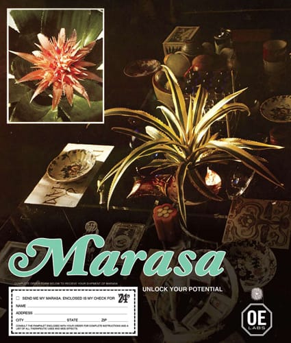 Narcotic-riffing duo Jonah Freeman and Justin Lowe have been at it again, creating an immersive drug den abandoned to time and decay. After staging their faux meth labs in Marfa, Miami, and New York, they’ve moved onto a fictional narcotic, Marasa, and an invented cult figure, Dr. Arthur Cook. Like