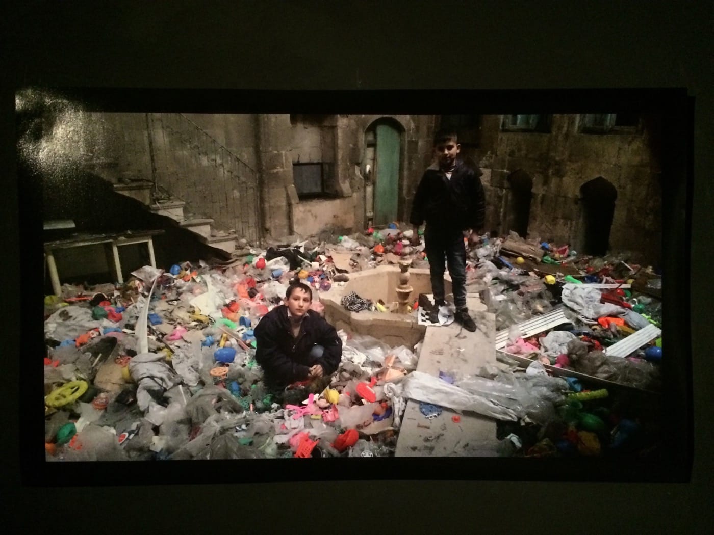 In the main exhibition at the Athens School of Fine Arts, a work by Polish dissident artist Artur Żmijewski proved to be one of the exhibition’s most controversial. Entitled “Glimpse” (2017), it’s an unabashedly grim, silent video depicting refugees on location in two camps: one in Calais, also known as the “Jungle,” (which was closed and demolished by French authorities in 2016); the other in Templehof, Berlin, which is Germany’s largest refugee camp, housing about 1,300 individuals. The work speaks to the plights of migrants and the sordid conditions in which they live, but does so in a way that borders on victim porn, shot in a style that reminded me of Werner Herzog. A young girl smiles into the camera, seemingly unaware of the conditions of the shacks around her while her father looks on grimacingly. Żmijewski gives one of the migrants a pair of worn shoes; he paints the face of another. Oscillating between trembling close-ups and medium range shots, the film feels shockingly disconcerting. It is both Documenta’s most powerful, visceral work, as well as its most disturbing.