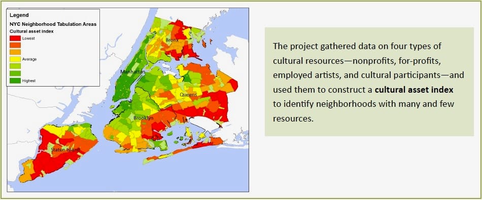 A new report outlining how the arts and culture contribute to a sense of wellbeing for residents of New York was released last month, and it details some surprising insights about the distribution, use, and significance of cultural assets throughout the city. The report relates the results of a two-year study undertaken by the University of Pennsylvania Social Impact of the Arts Project (SIAP) in collaboration with the Reinvestment Fund, which is a federally certified community development financial institution (or CDFI).