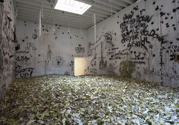 As well as the gathering of objects, the artificiality that entails a contemporary artistic recreation of a hoarder’s setting can take away from the pieces themselves. There’s a sort of disingenuous nature, masquerading, not unlike wealthy hipsters trying to look poor. Legendary exhibits such as Dash Snow and Dan Colen’s Nest at Deitch Projects, in which the drug-aided artists shredded phone books to make a pile suitable for a giant hamster, come immediately to mind. Volunteers spent hours shredding and leaving refuse until the artists came along one night and literally pissed on the work. In many ways, this showed their own take on what they found to be a statement on their work’s value, and perhaps more importantly, their own values.