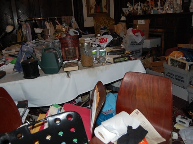 Earlier this month marked a close to the latest chapter of a long legal battle in the court system between Club Hierarchy, and its former President, O. Aldon James, a much-publicized “eccentric” who had been evicted from several units he and his twin brother had occupied due to chronic disrepair and hoarding. Photos were leaked to the press showing numerous objects-de-art intermingled with newspapers piled to the ceiling, mouse and cockroach droppings, water damage, and refuse thrown about the apartments until no walkways remained. To say this must have been a shock to the venerated membership would be an understatement. Did they have another Grey Gardens on their hands?