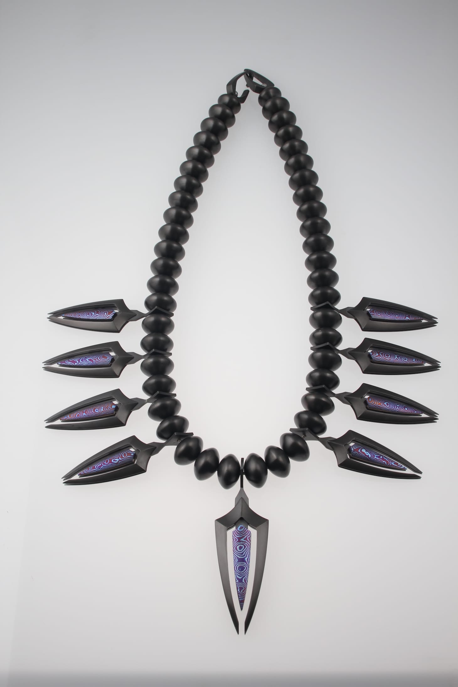 Pat Pruitt (Laguna Pueblo): Pat’s work is wearable while being aggressively futuristic. He studied mechanical engineering and traditional silverwork, which has led him to create works in stainless-steel, titanium, and zirconium. His works take what we often think of as Southwest style jewelry to a new level. It’s today. It’s tomorrow. It’s wonderful. It’s wild. It’s Indian Market.
