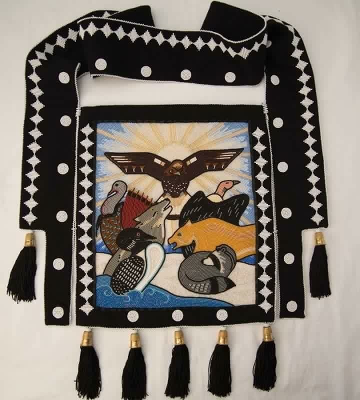 Katrina Mitten, “Original Clans of Myaamia” (2017), beaded bandolier bag (image courtesy the artist)