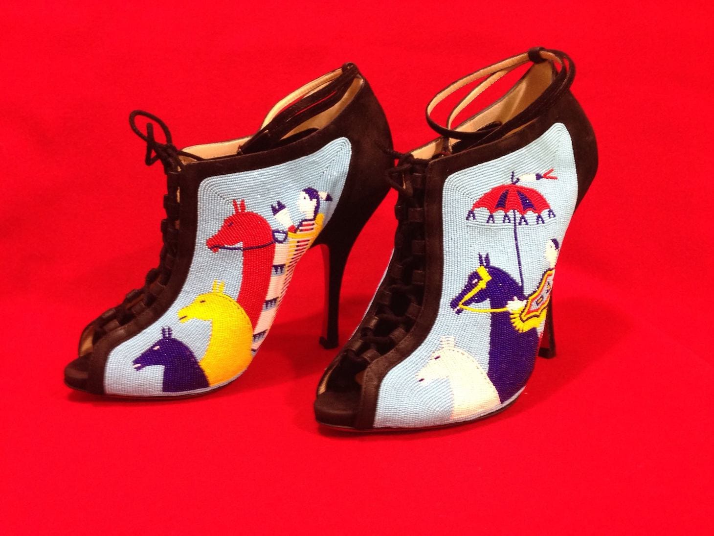 Emil Her Many Horse, “Tȟašúŋka Óta Wiŋ” (2016), Louboutin shoes and size 16 beads (image courtesy the artist)