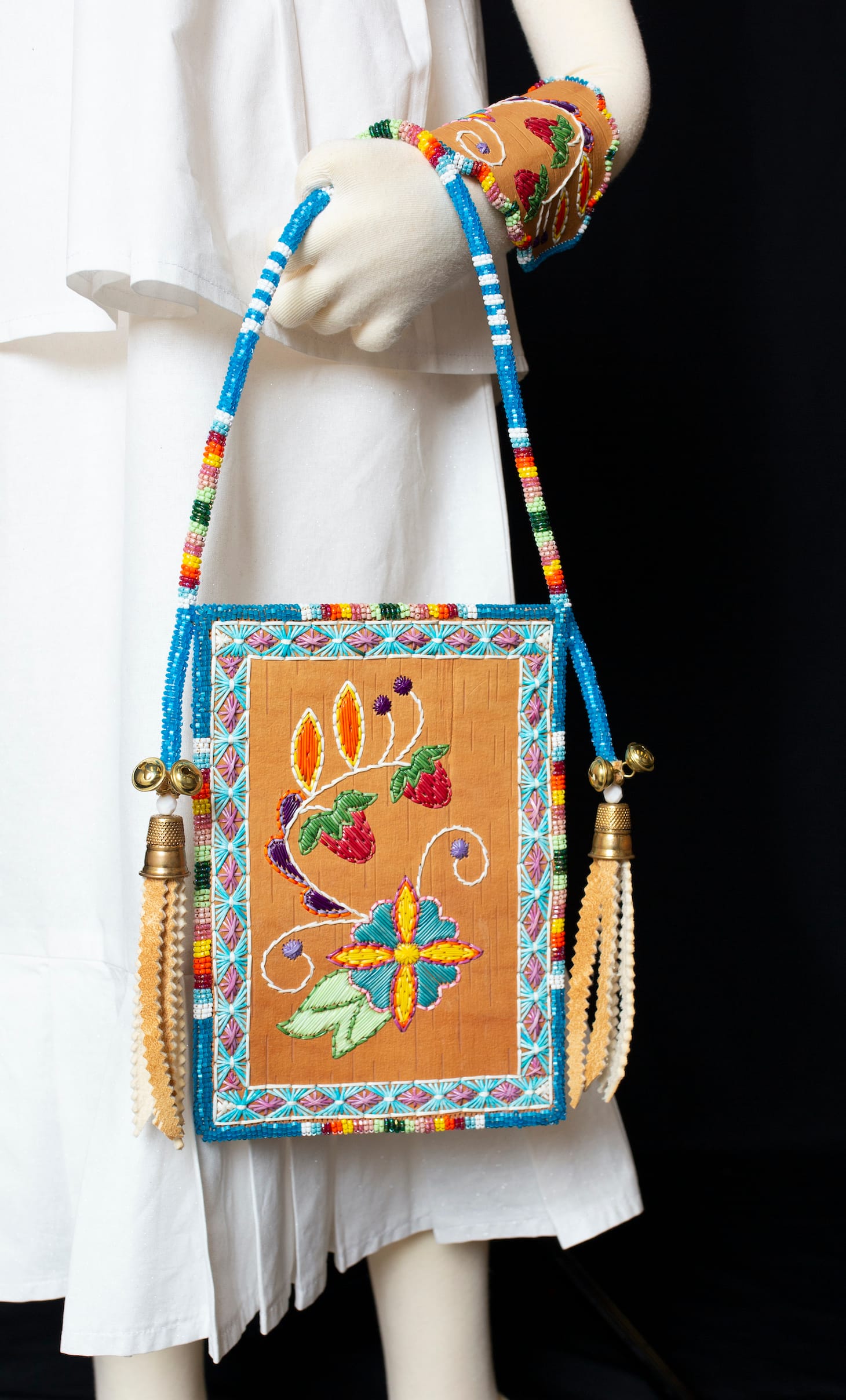 Katrina Mitten (Miami Tribe of Oklahoma): A self-taught artist, Mitten lives in Indiana, the historical homeland of Miami people. She beads unique, three-dimensional designs in beadwork and finds inspiration in nature along with her family’s oral stories. Her work includes purses, baby cradles, and even prams, which she embellishes with pictorial designs once only seen in decades past.