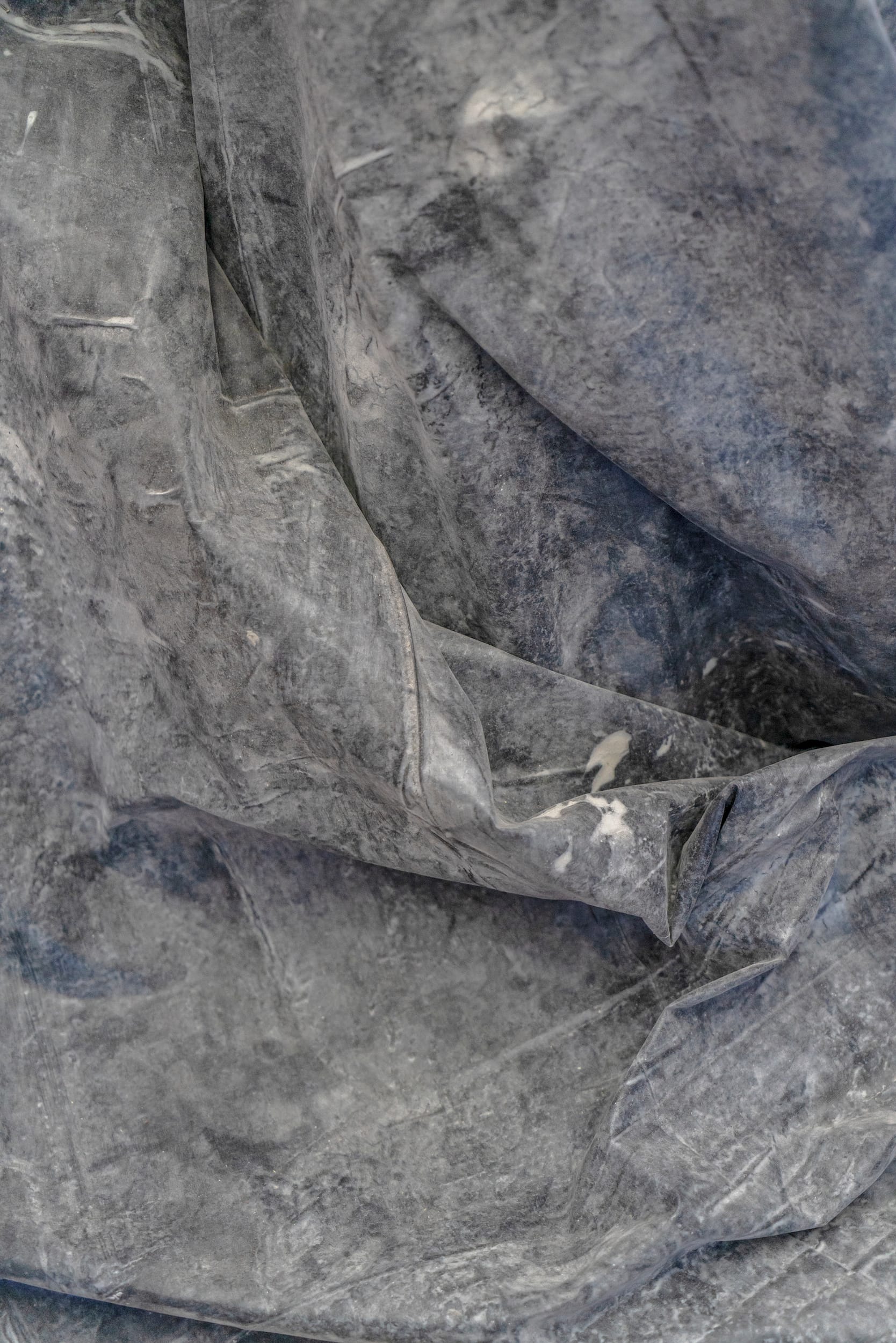 Nasser, who was born in 1990 in Tyre, a coastal city in the south of Lebanon, grew up in Abu Dhabi and Beirut, and went to art school at Central Saint Martins and the Slade, both in London, and at Yale. In just a few years, she has developed a practice of painting that bears witness to infrastructural failure, colonial theft, and disregarded histories not by depicting traumatized bodies and desecrated landscapes but by registering them indexically. She has imprinted the orientalist symbols of a Yale secret society building and mapped the toxicity of Beirut’s tap water by mixing it with dye and rock salt before introducing fabric. For the 15th Sharjah Biennial, she dyed, buried, and rinsed textiles along the Wazzani River, which runs back and forth across the militarized UN Blue Line demarcating Lebanese from Israeli territory. She has tended to the flint stone terrace walls and olive trees of her great-grandparents’ home in the village of Souaneh in southern Lebanon, where the bomb shelter was recently put back into regular use, with charcoal etchings on stitched-together household textiles, dyed with local wildflowers and cleansed by the rain.